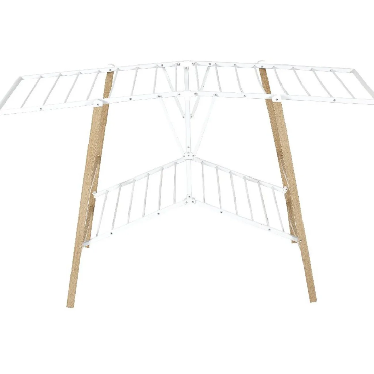 Enfin un joli étendeur à linge ! Ce séchoir blanc et bois aux couleurs naturelles a son petit côté authentique et vous rappellera le sauna d’un chalet en bois. Vous n’aurez plus honte de faire sécher vos vêtements devant les autres tant vos affaires seront mises en valeur par cet étendoir effet bois d’arbre ! Original et actuel, il prendra peu de place dans une pièce de la maison et ses étendeurs espacés vous faciliteront l’étendage et accélèreront le séchage !