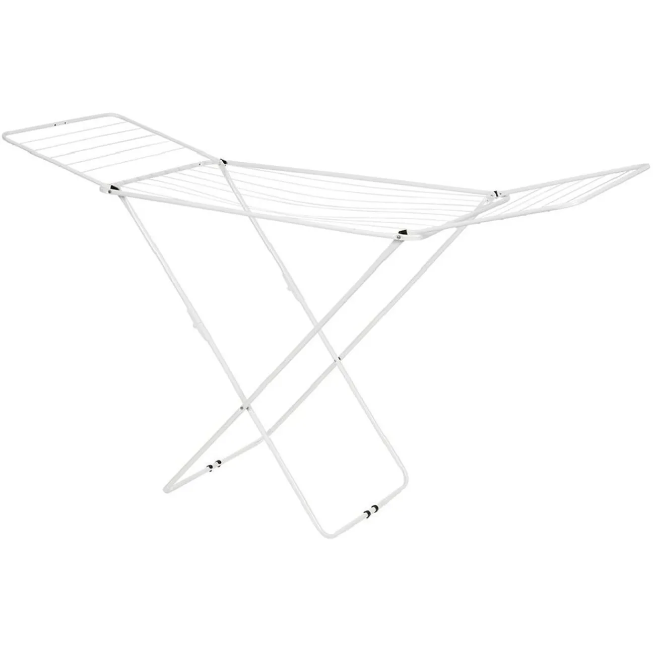 Ce séchoir à linge horizontal en métal blanc offre une capacité de 18 mètres d’étendage et peut supporter 10 kgs de linge.