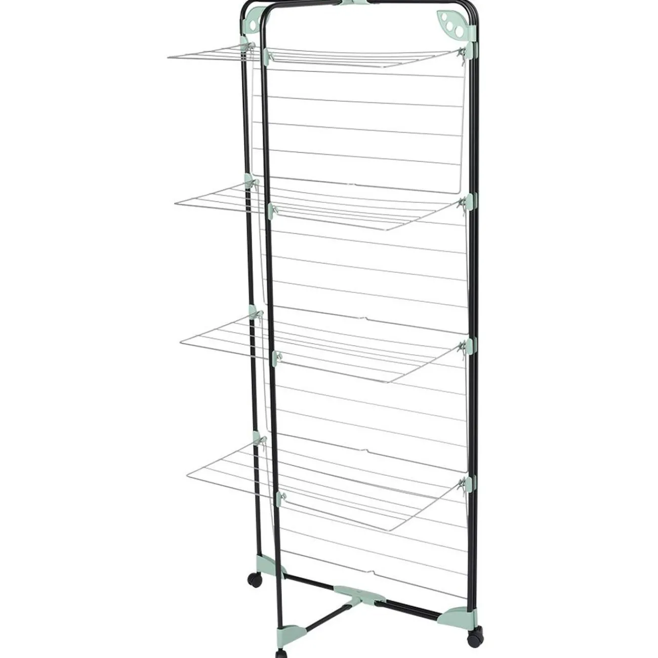 Séchoir tour sur 4 niveaux avec une capacité d’étendage de 32 mètres, pratique pour sécher son linge en hauteur sans occuper tout l’espace de votre intérieur.