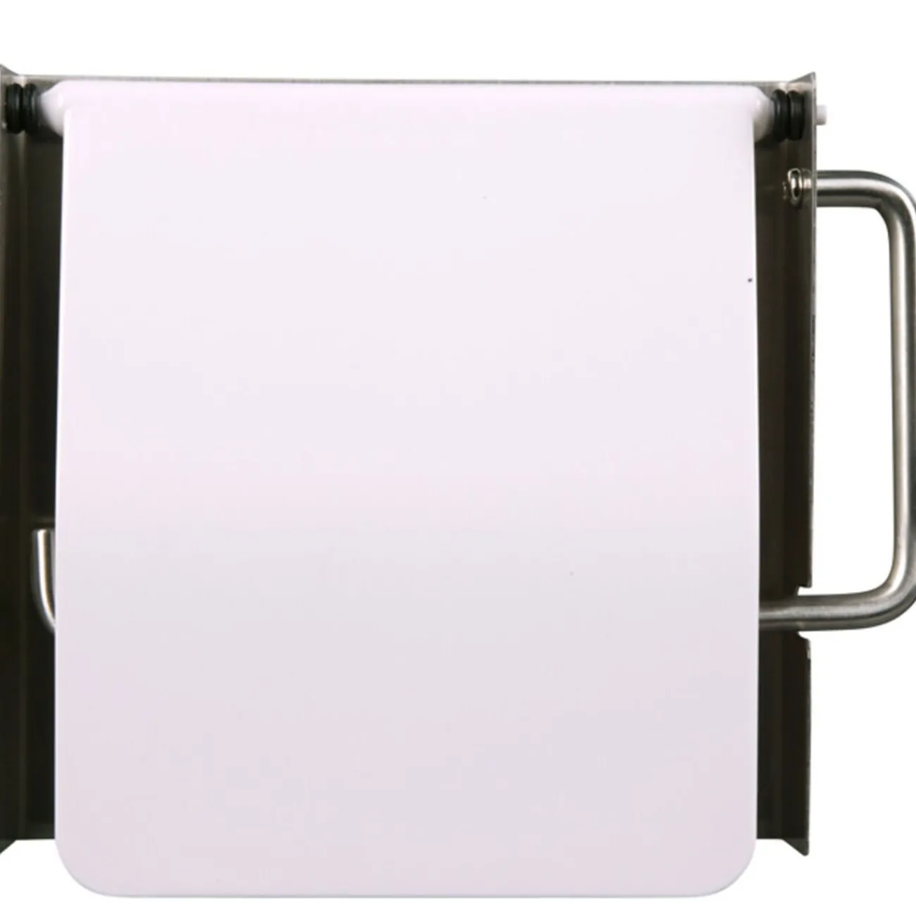 Dérouleur papier toilette blanc, inox et plastique mélaminé.