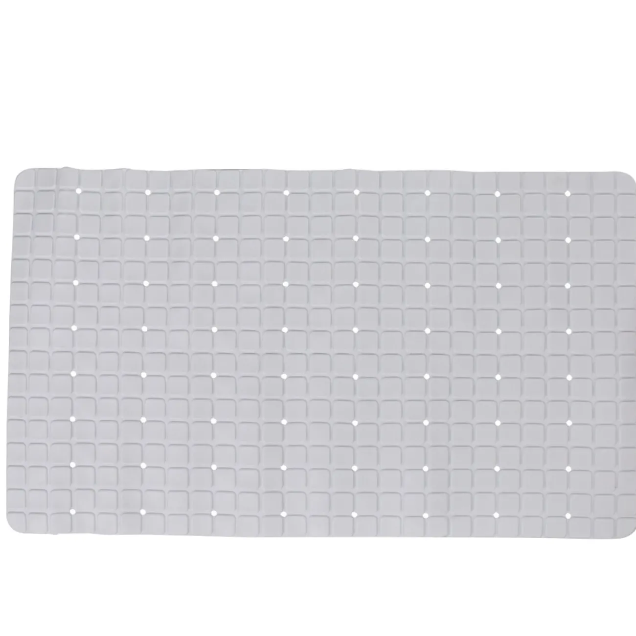 Fond de baignoire blanc aspect carreaux en reliefs, pour éviter les mauvaises glissades dans le bain.