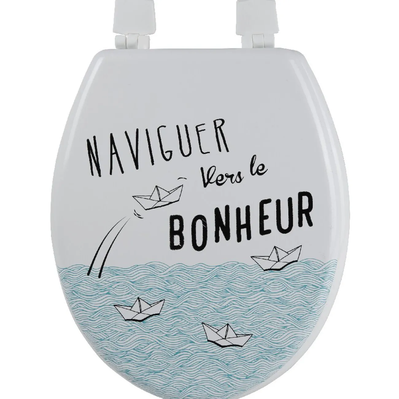 Abattant WC universel à motif marin design « naviguer vers le bonheur », idéal pour apporter une touche originale et joyeuse aux WC.