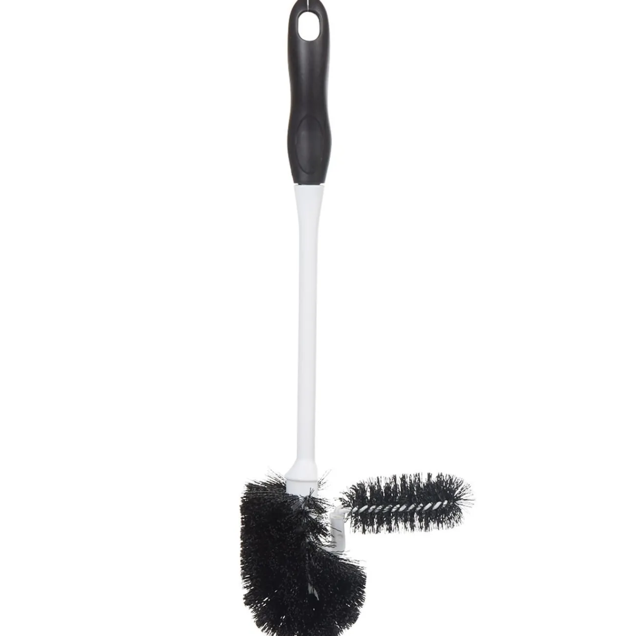 Brosse WC noire et blanche avec brossette intégrée. Le manche est détachable afin de changer la brosse quand il est nécessaire.