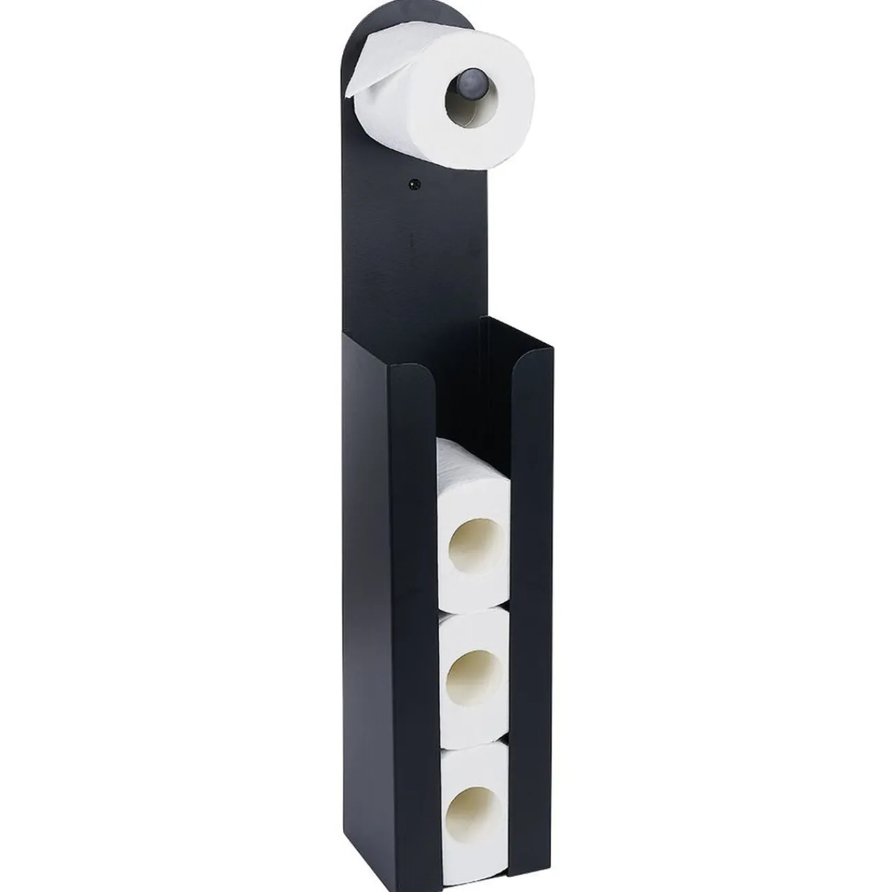 Terminé les pannes de papier. Ce dérouleur noir s’immisce avec goût dans la décoration de vos toilettes. A fixer au mur ou posé au sol, son espace de stockage vous permettra d’avoir toujours un rouleau à portée de main !