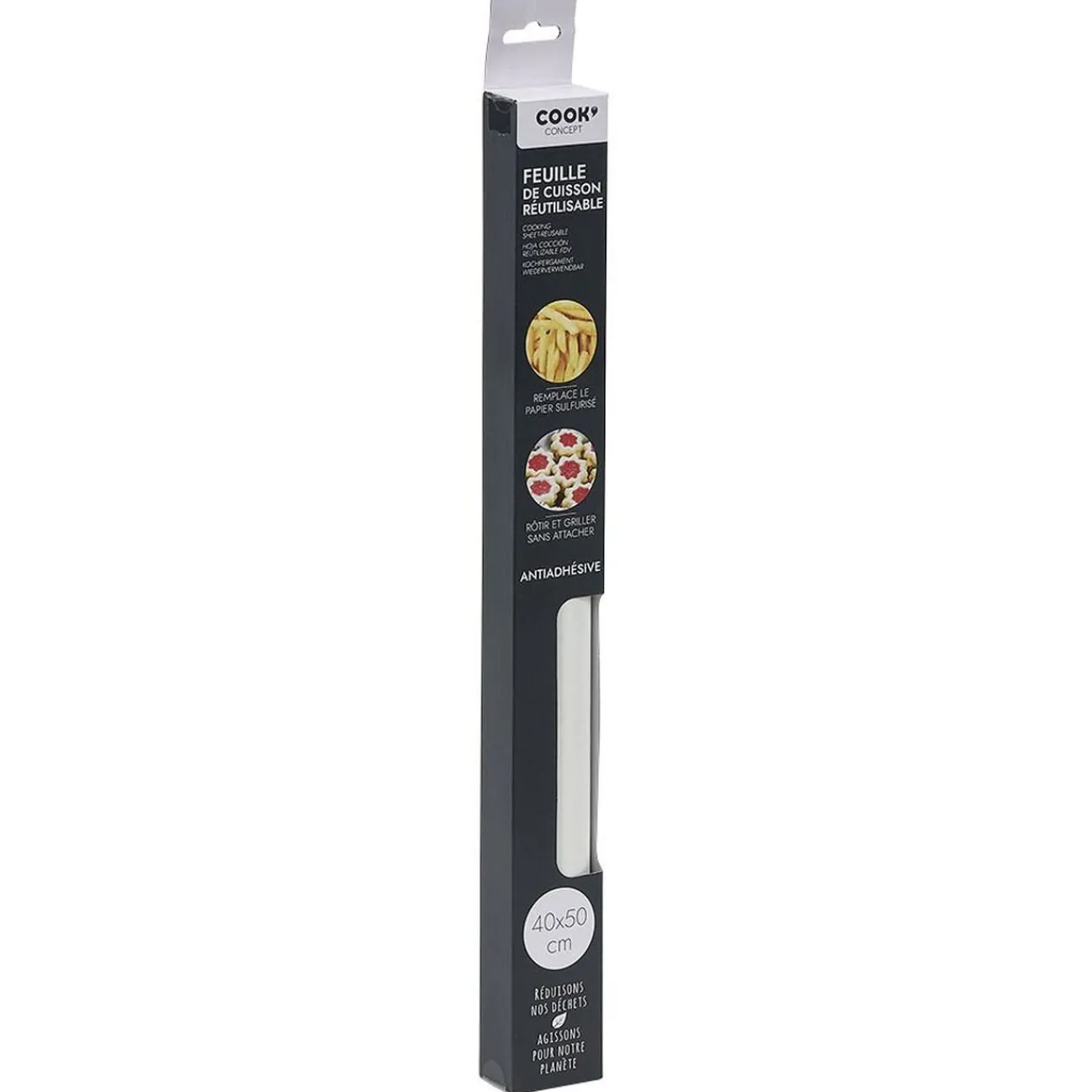 Cette feuille de cuisson réutilisable se nettoie facilement et vous permettra de faire cuire toutes sortes de plats et gâteaux qui ne collent pas. Idéal pour un démoulage facile