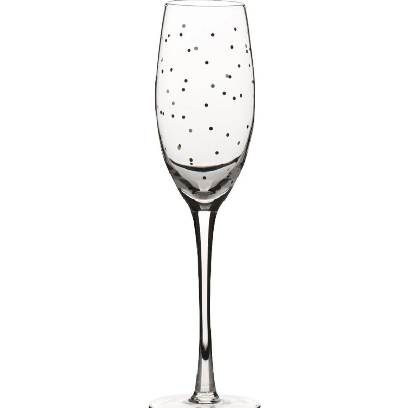 Flûte à champagne à pois dorés et noirs, idéale pour apporter une touche raffinée et dynamique à votre décoration de table. Complétez votre service en retrouvant le verre à eau assorti, référence 369632, ainsi que le verre à vin, référence 369633, selon disponibilité en magasin.