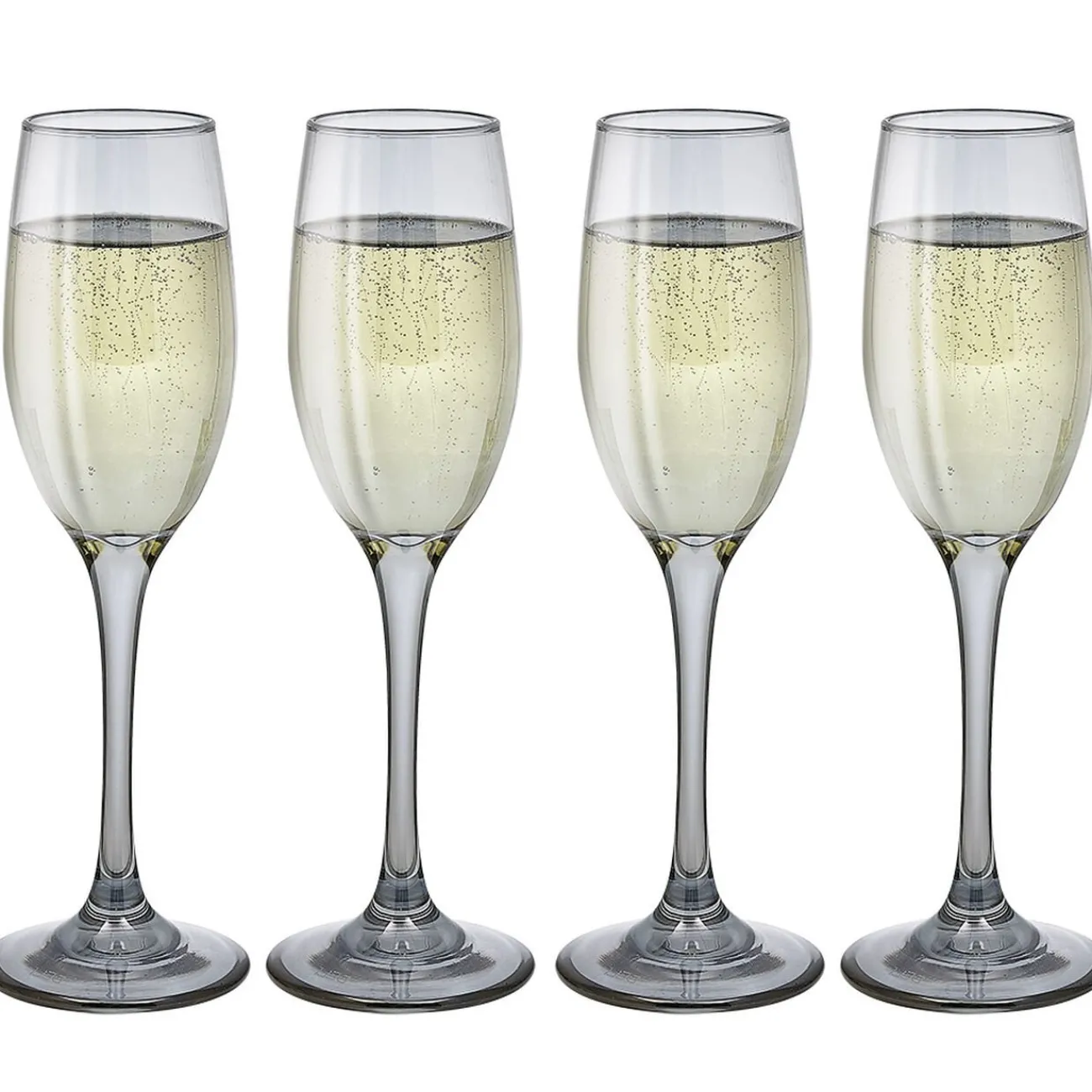 Ce lot de 4 flûtes en verre argenté sera du plus bel effet sur votre table de fête.