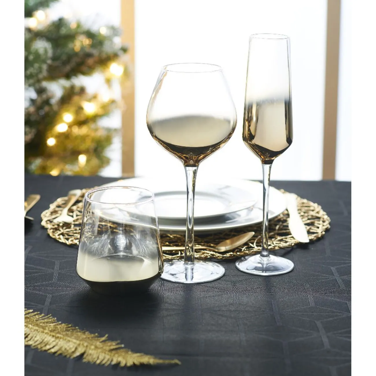 Flûte de table transparente et dorée