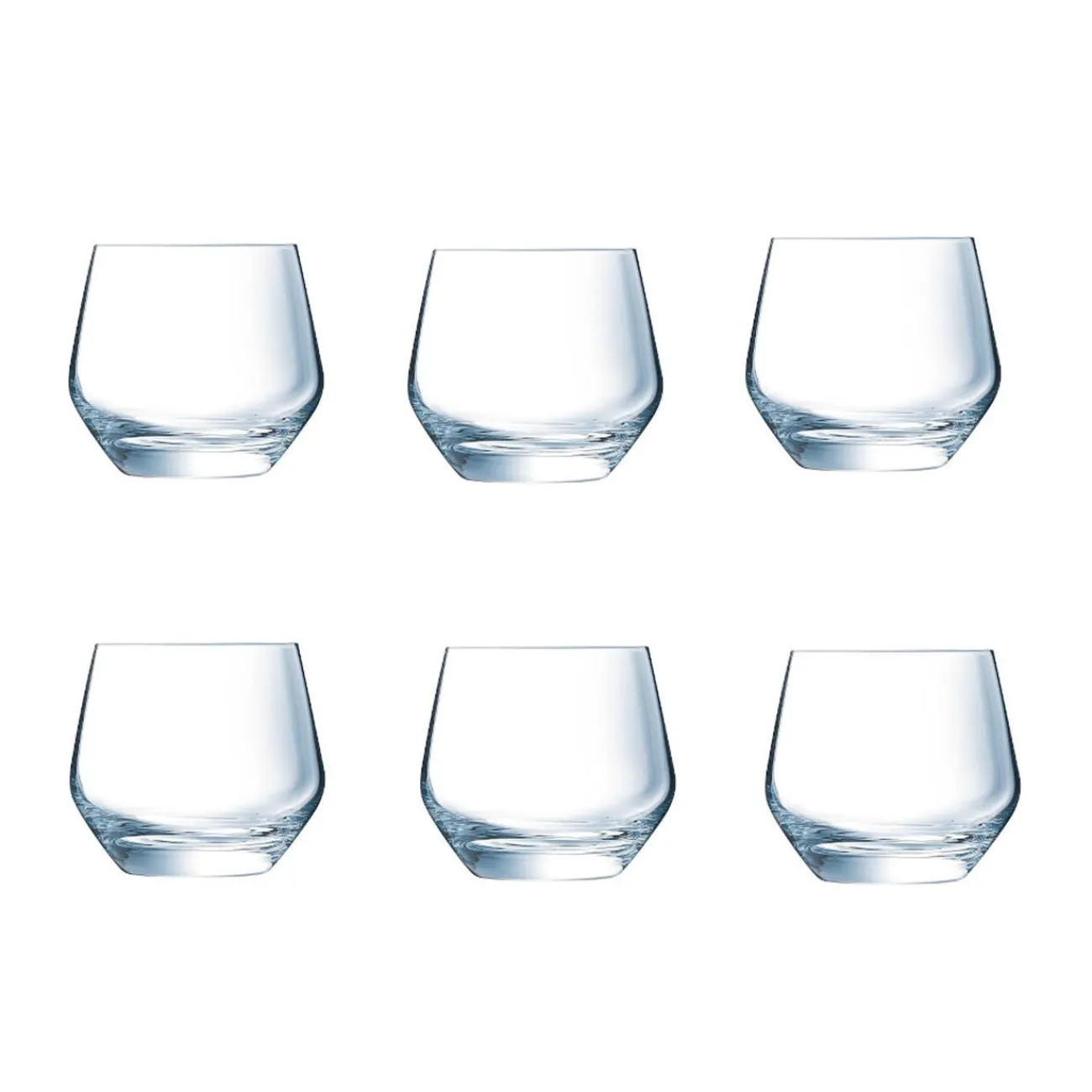 Idéal pour servir un digestif ! Lot de 6 gobelets en verre gamme Ultime, de forme arrondie et d’une contenance de 35 cl.