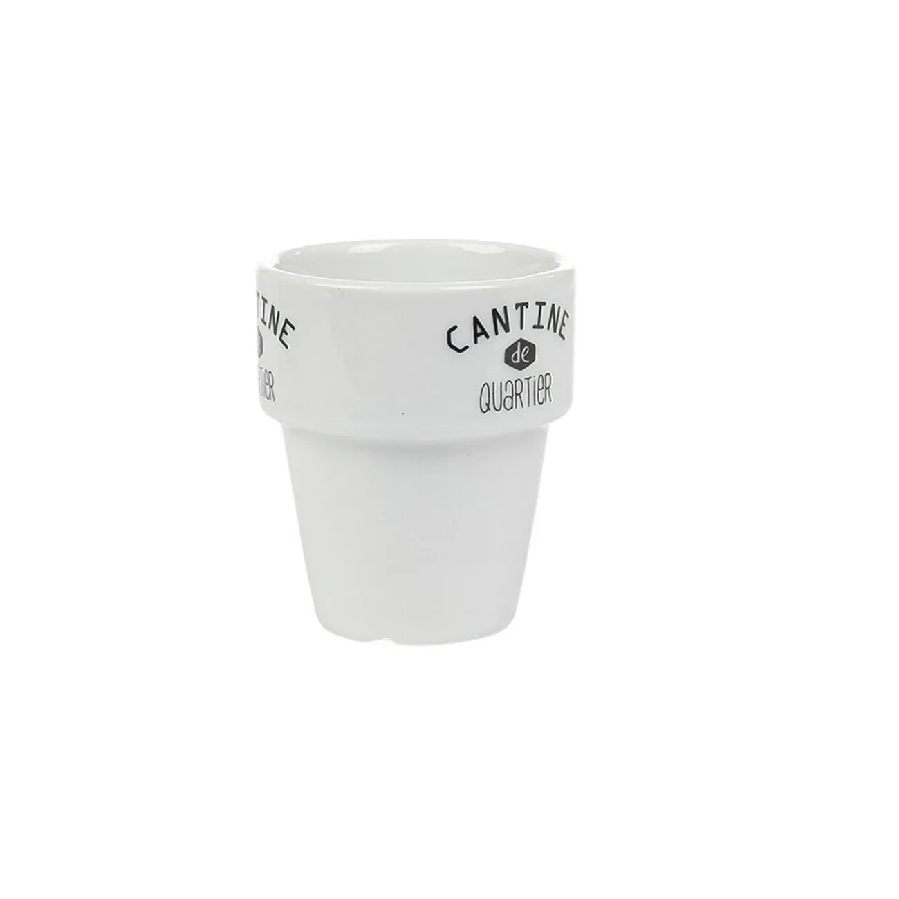Set de 4 mugs en porcelaine assortis noirs et blancs: 2 mugs avec motif graphique et 2 avec inscription design Café et Cantine de quartier. Idéal pour apporter une chic et moderne à vos pauses cafés!