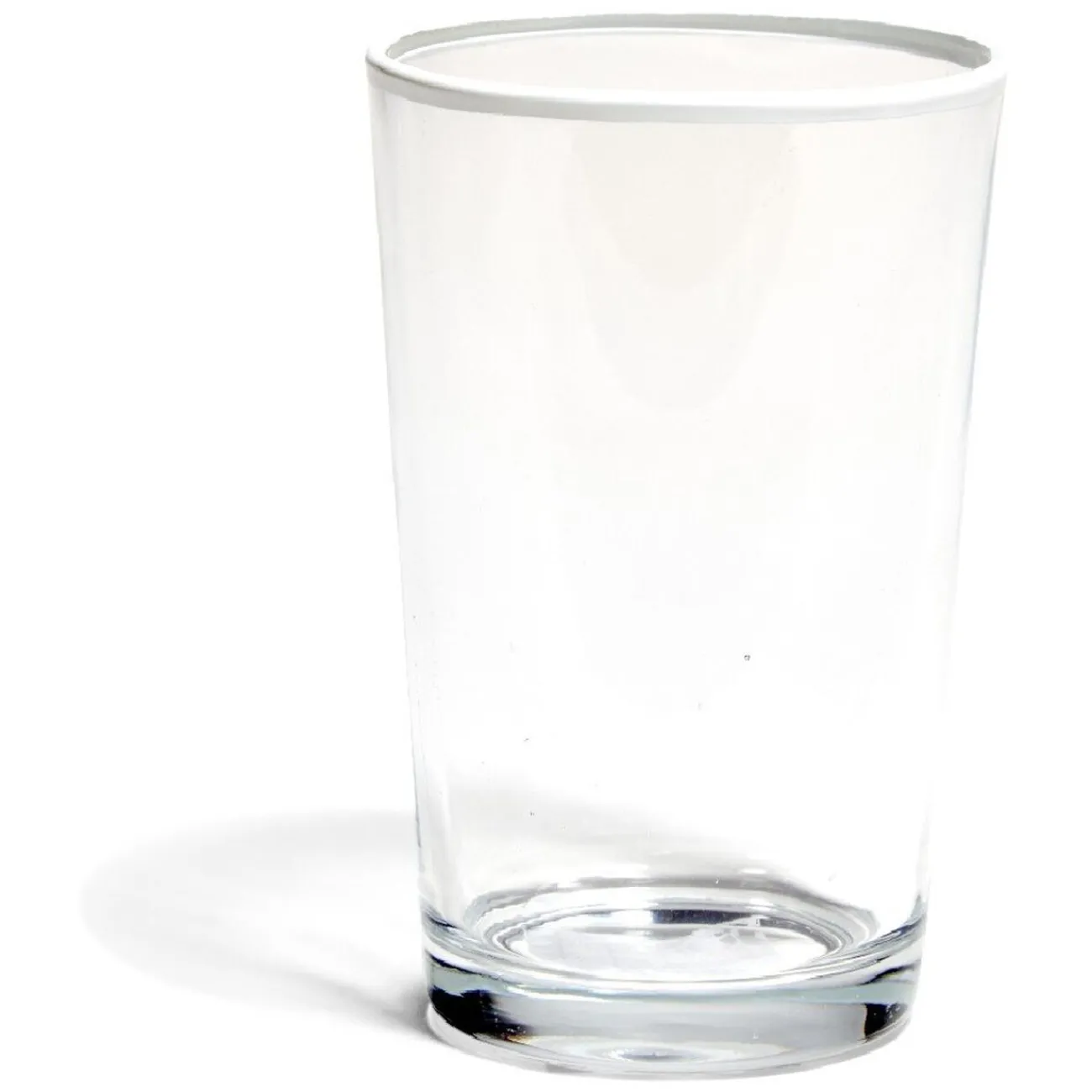 Lot de 3 gobelets en verre transparent avec bord coloré d’une contenance de 30 cl.