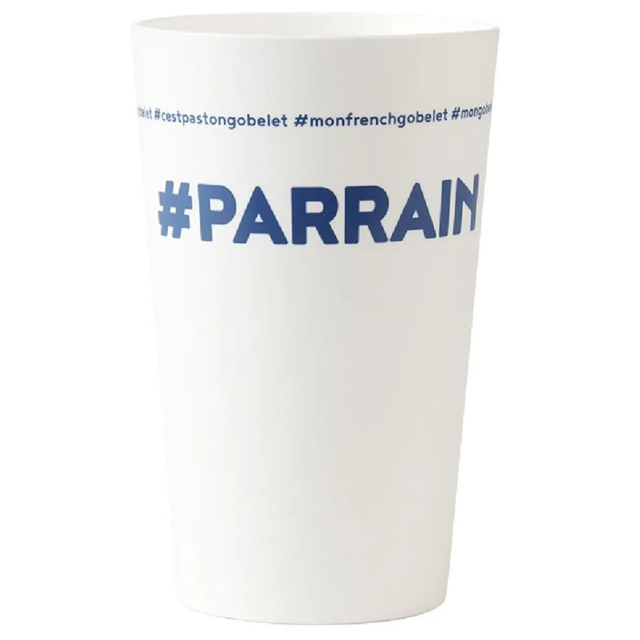Gobelet #PARRAIN en plastique blanc et bleu. Existe en différents prénoms.