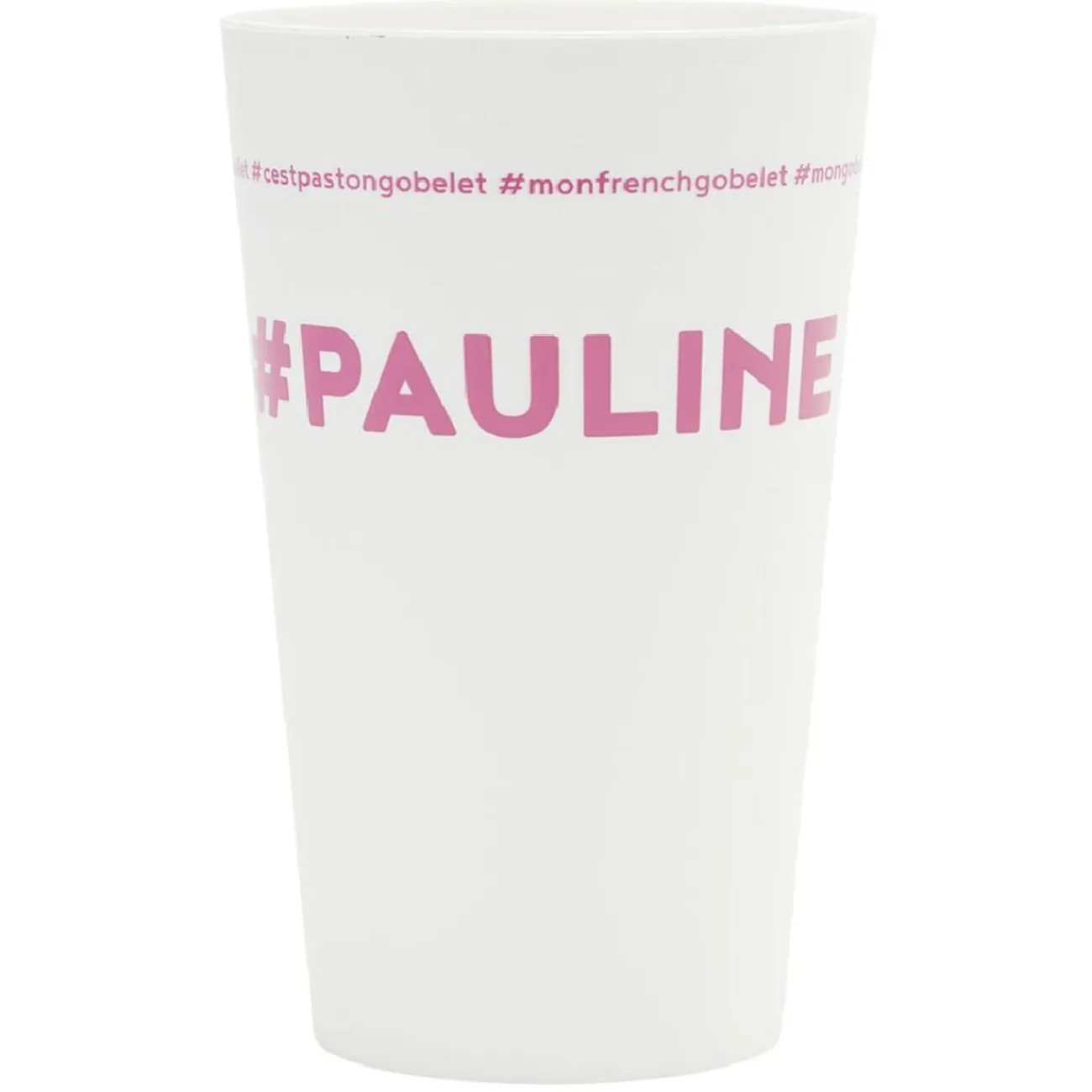 Gobelet réutilisable en plastique blanc avec inscription rose #PAULINE.