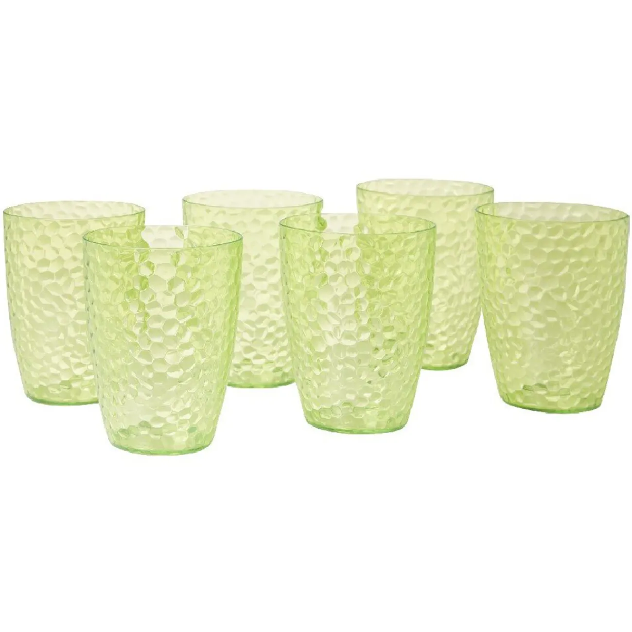 6 gobelets verts en plastique martelé, dim. Ø8xh.11 cm.