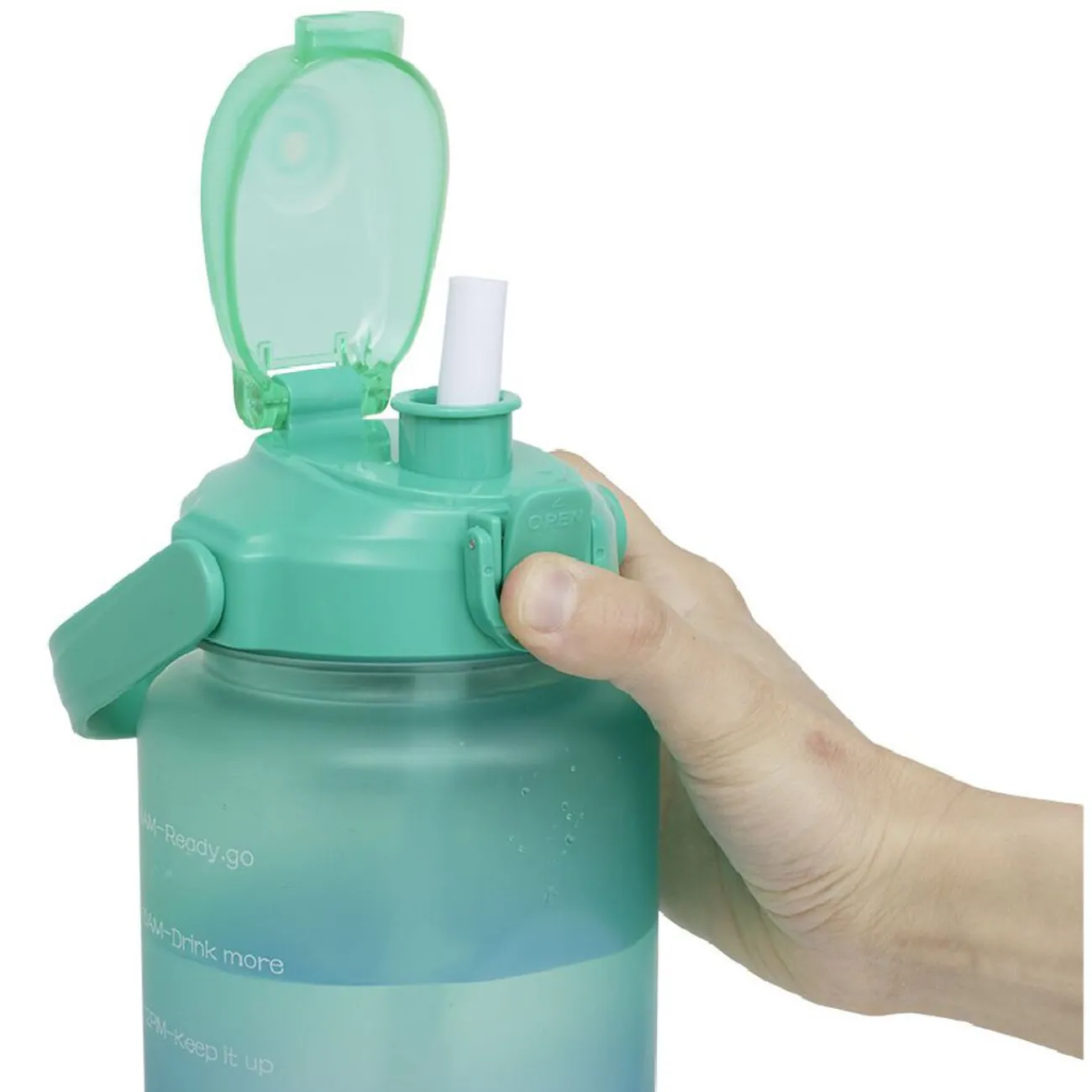 Gourde avec palier toutes les 2 heures, complété d’une inscription pour vous motiver à boire votre litre et demi d’eau par jour.