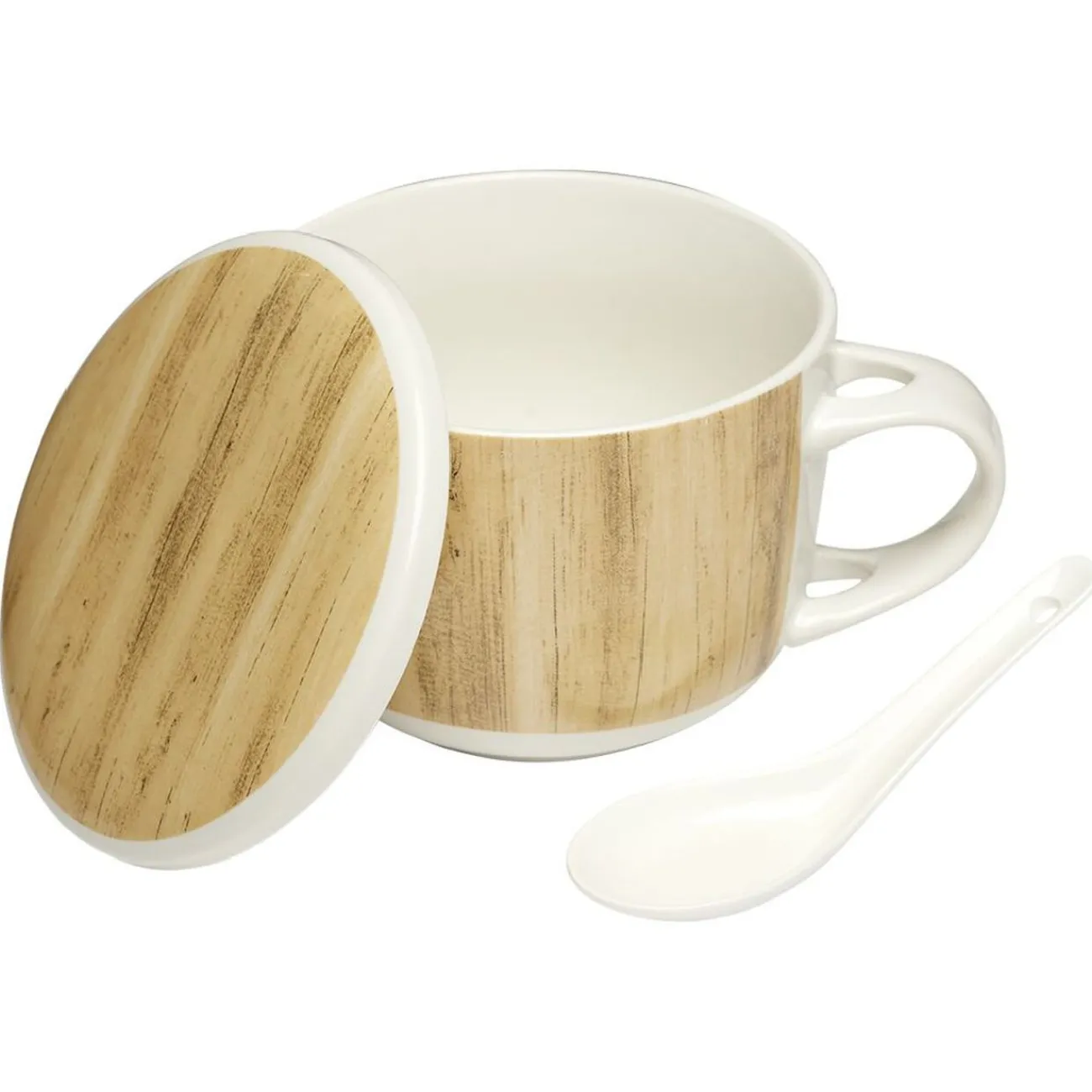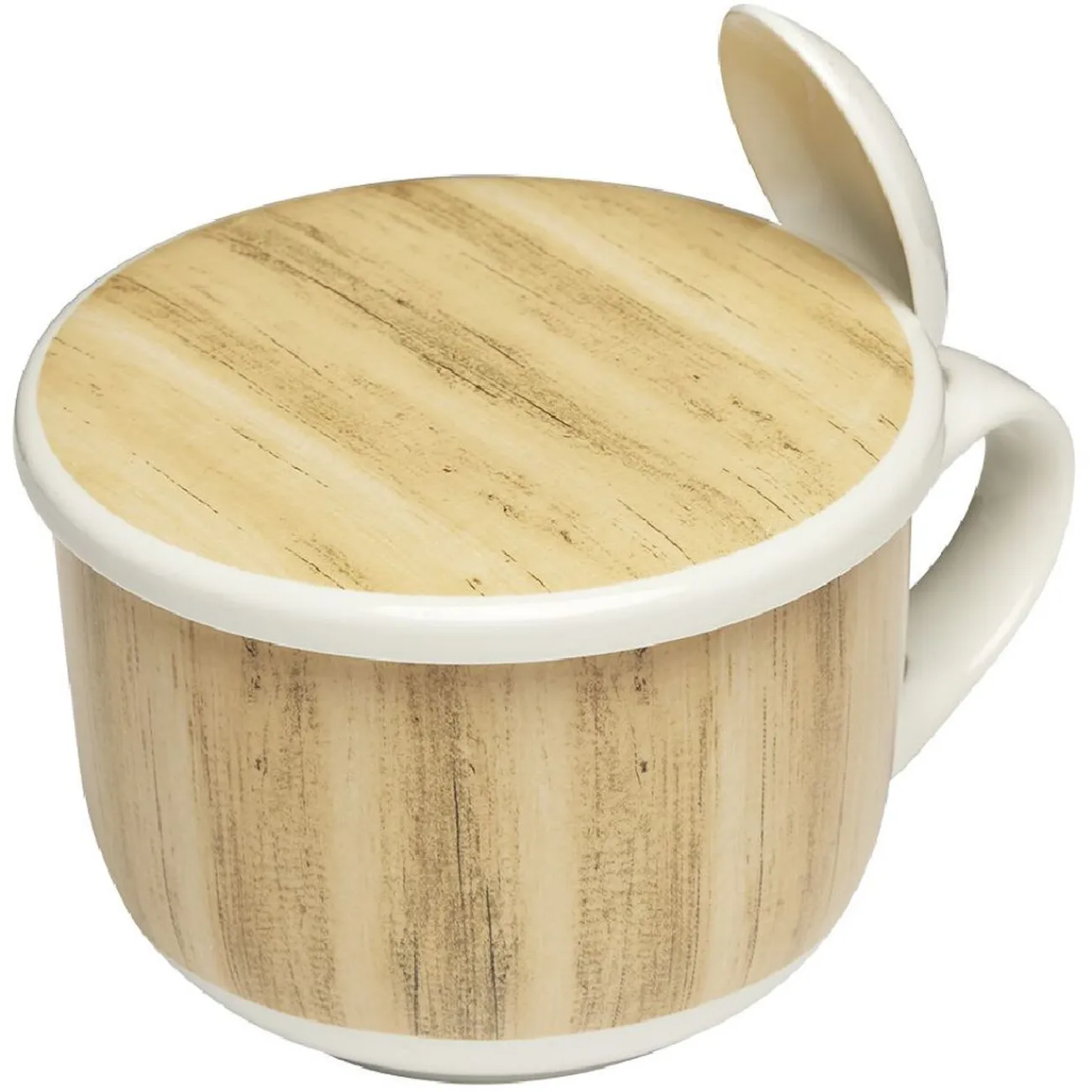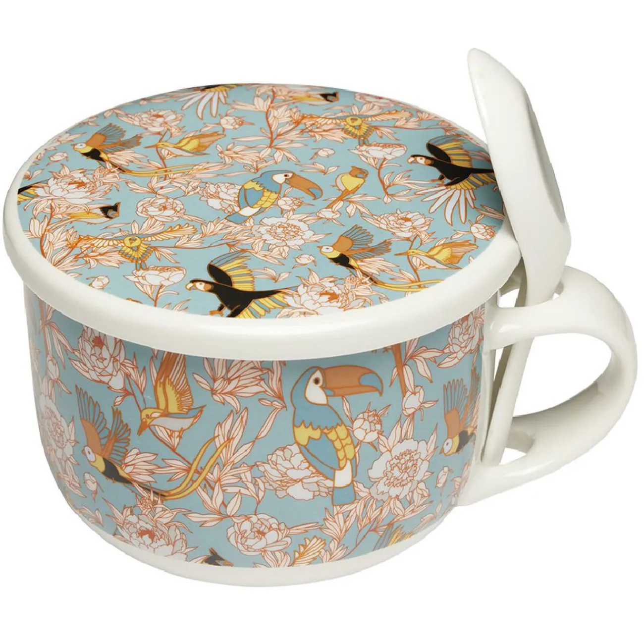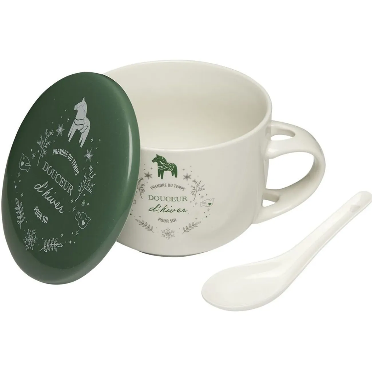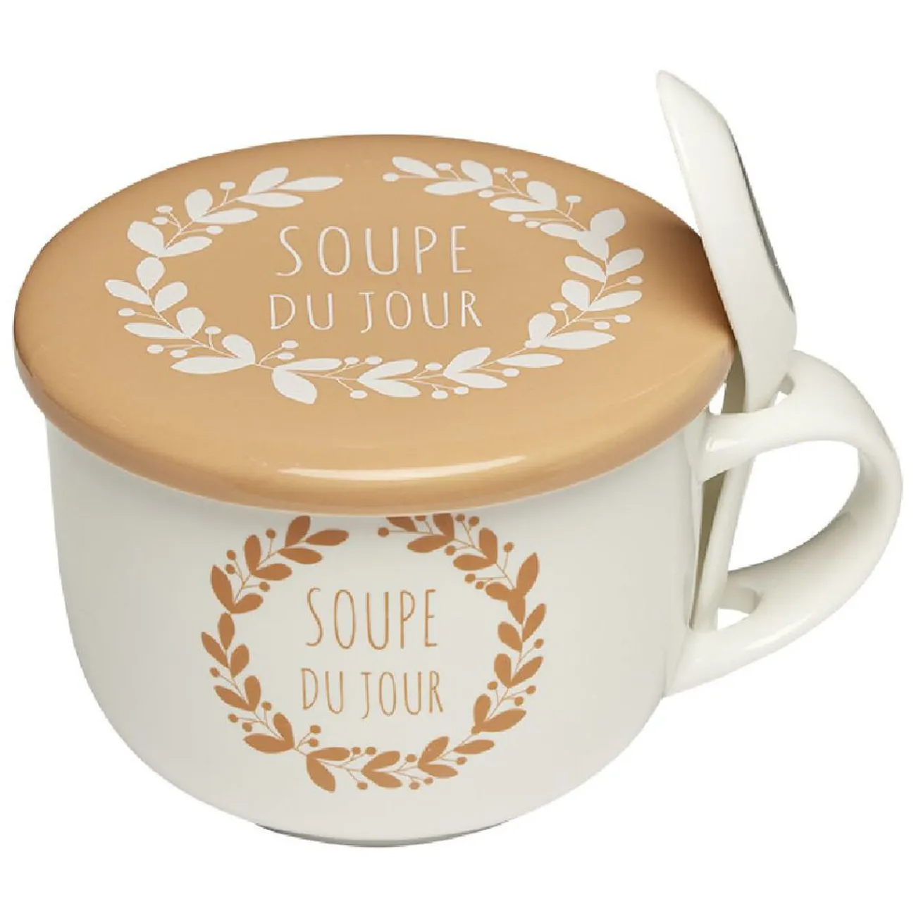Jumbo en faïence avec cuillère et couvercle assortis.