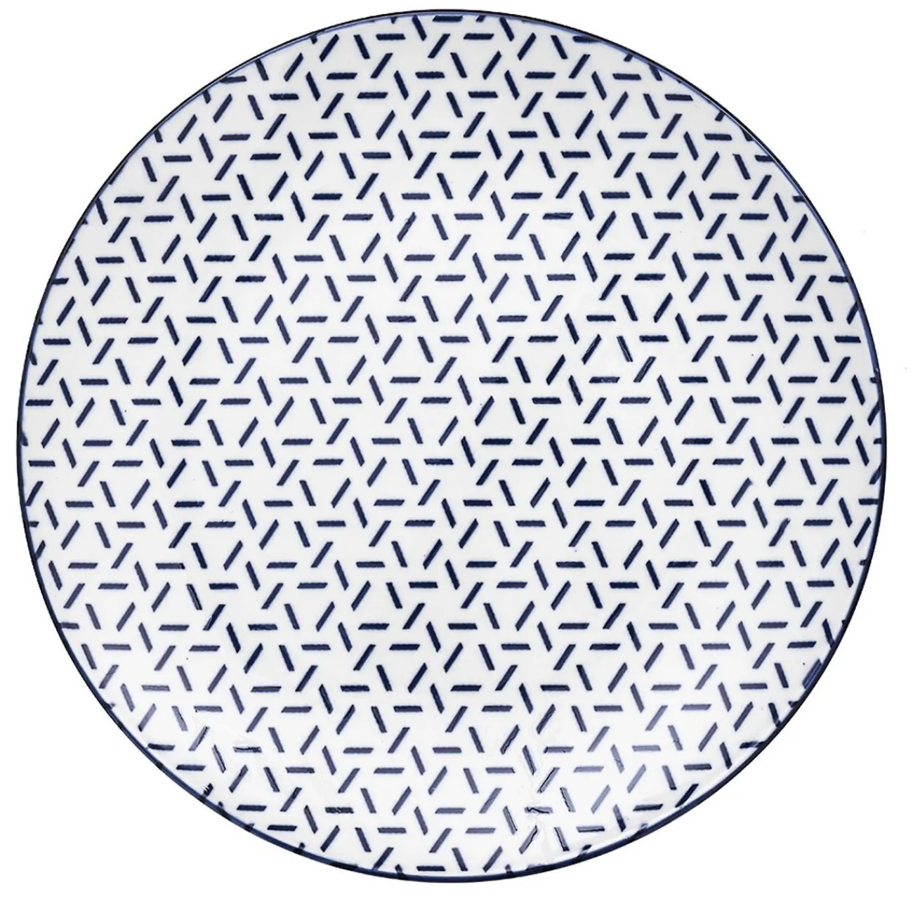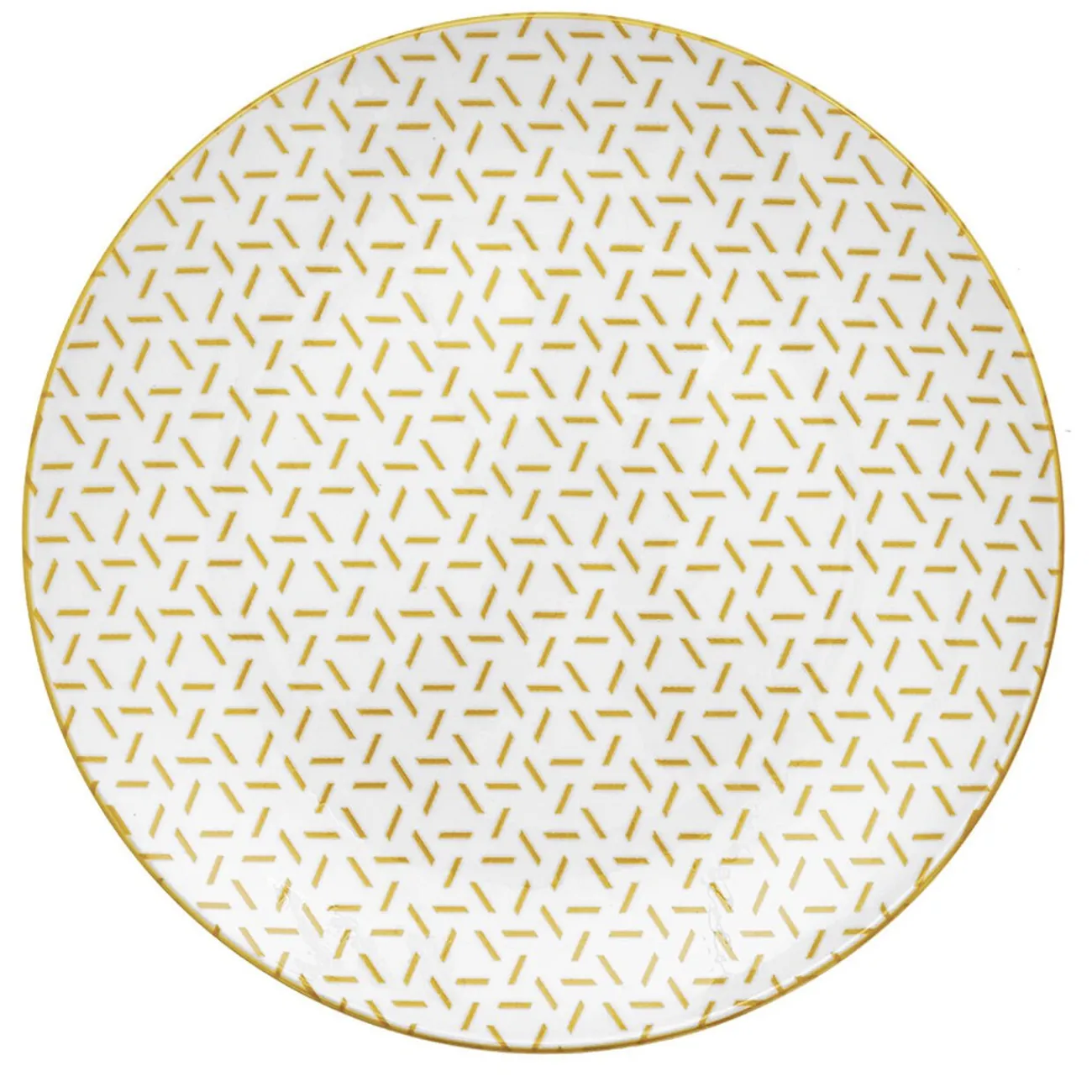 Set de 4 assiettes à dessert en porcelaine blanche avec contour et motifs petits traits colorés formant des triangles, idéal pour créer des mix and match de couleur sur votre table.