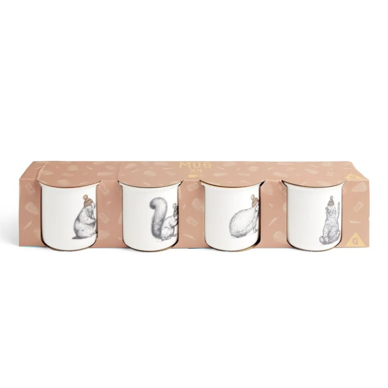 Cet ensemble de 4 mugs ornés de motifs d’animaux funs avec un bonnet sur la tête (1 écureuil, 1 ours, 1 hérisson, 1 marmotte) apportent une touche ludique à vos pauses café ou thé.