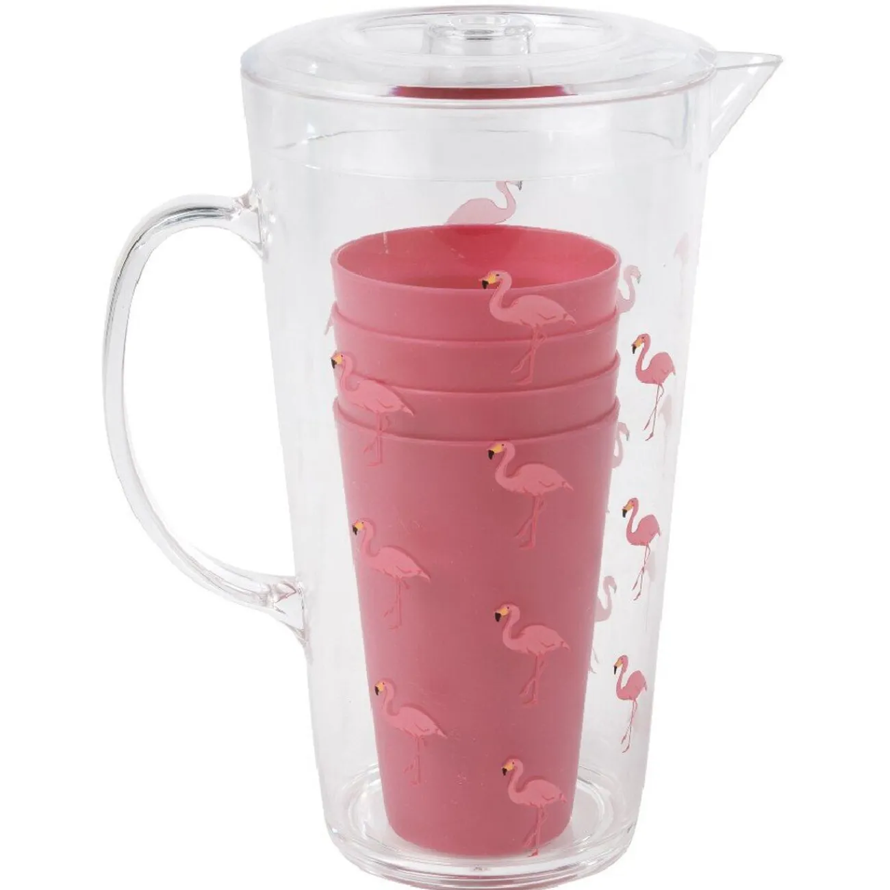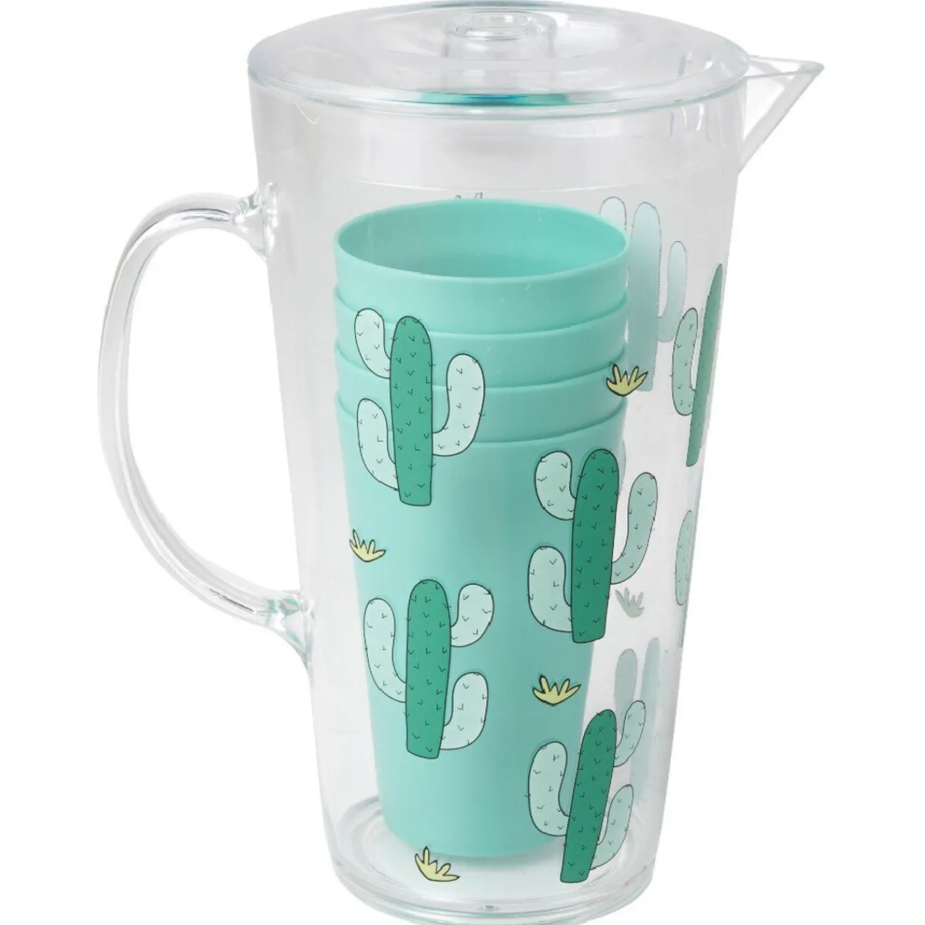 Ce produit existe en 3 modèles, modèle aléatoire selon disponibilité en magasin – Couleur : Rose motif flamant rose, jaune motif ananas, vert motif cactus – Dimensions : Ø9,7 bas du pichet x Ø13,8 haut du pichet x H25,5 cm – Matière :Plastique