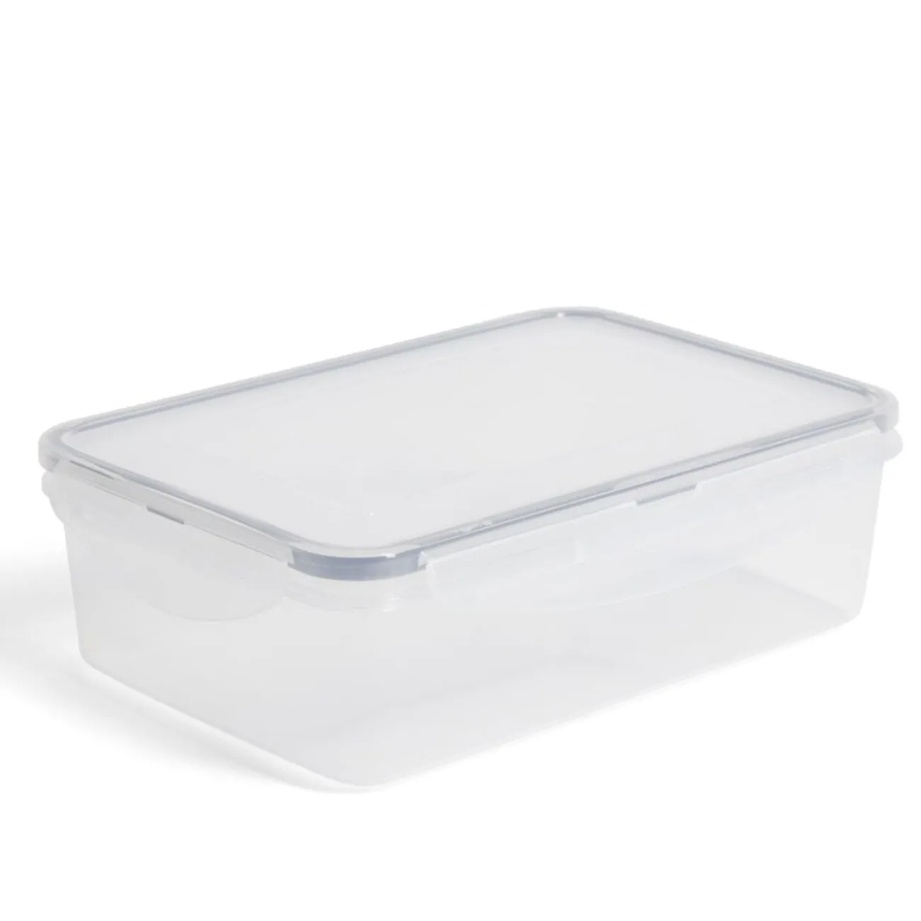 Boîte alimentaire en verre avec couvercle en polypropylène à clips et joint en silicone pour une fermeture parfaitement hermétique.