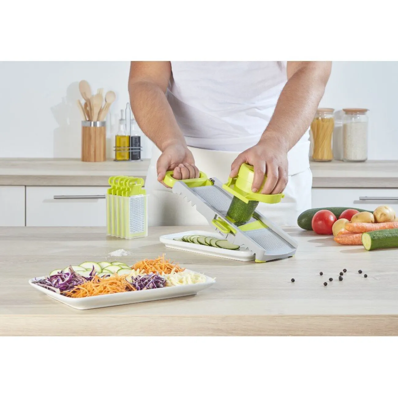 Cette mandoline permet de découper rapidement vos légumes sous différentes formes grâce à ses 6 lames interchangeables.