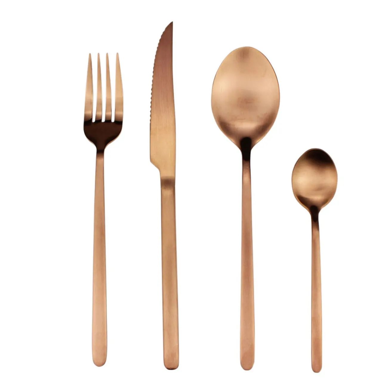 Chic et tendance, cette ménagère de 16 pièces en inox marron ne passera pas inaperçue.