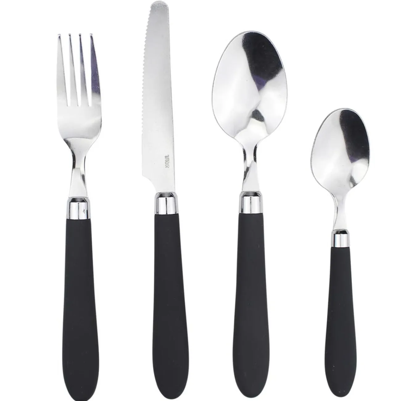 Ménagère composée de 24 couverts en inox avec manche antidérapant en soft touch de couleur noire.