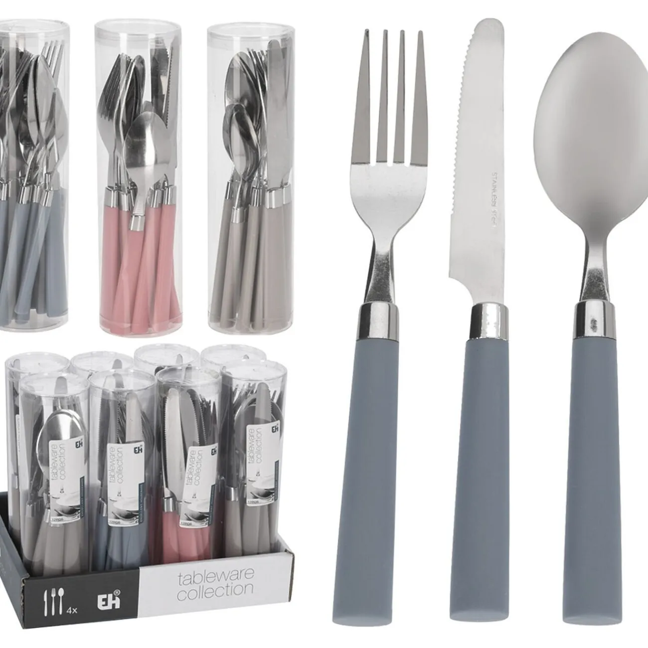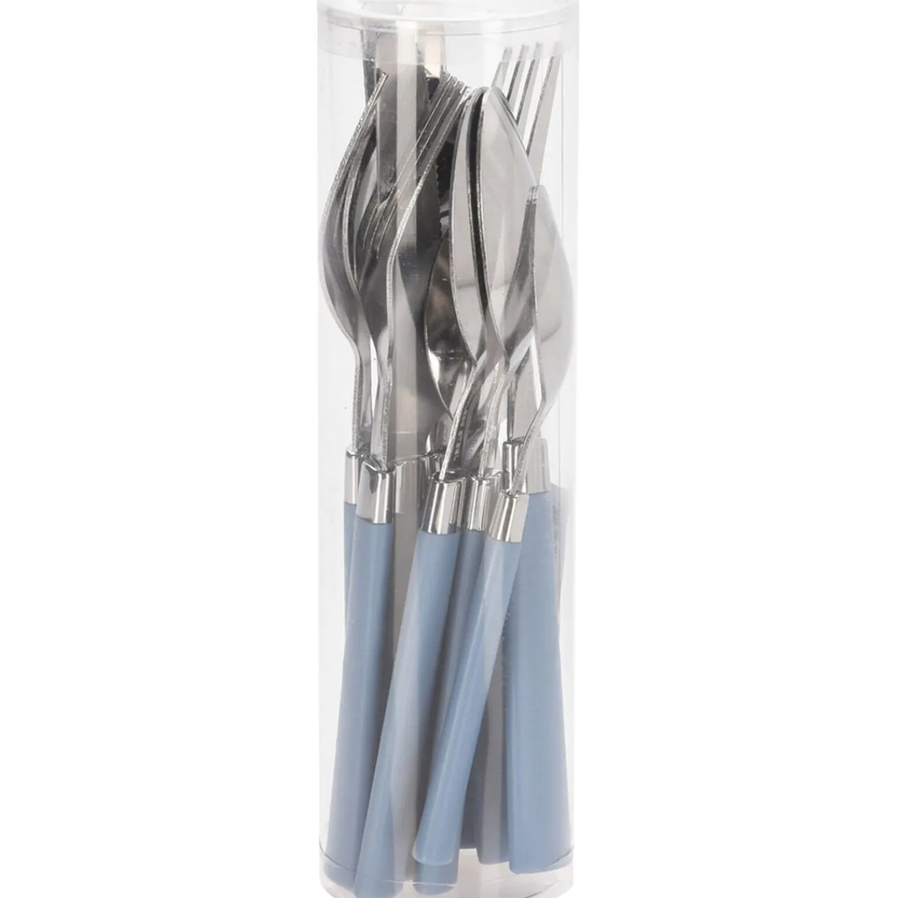 Ménagère avec couverts à manches bleus, composée de 12 pièces :