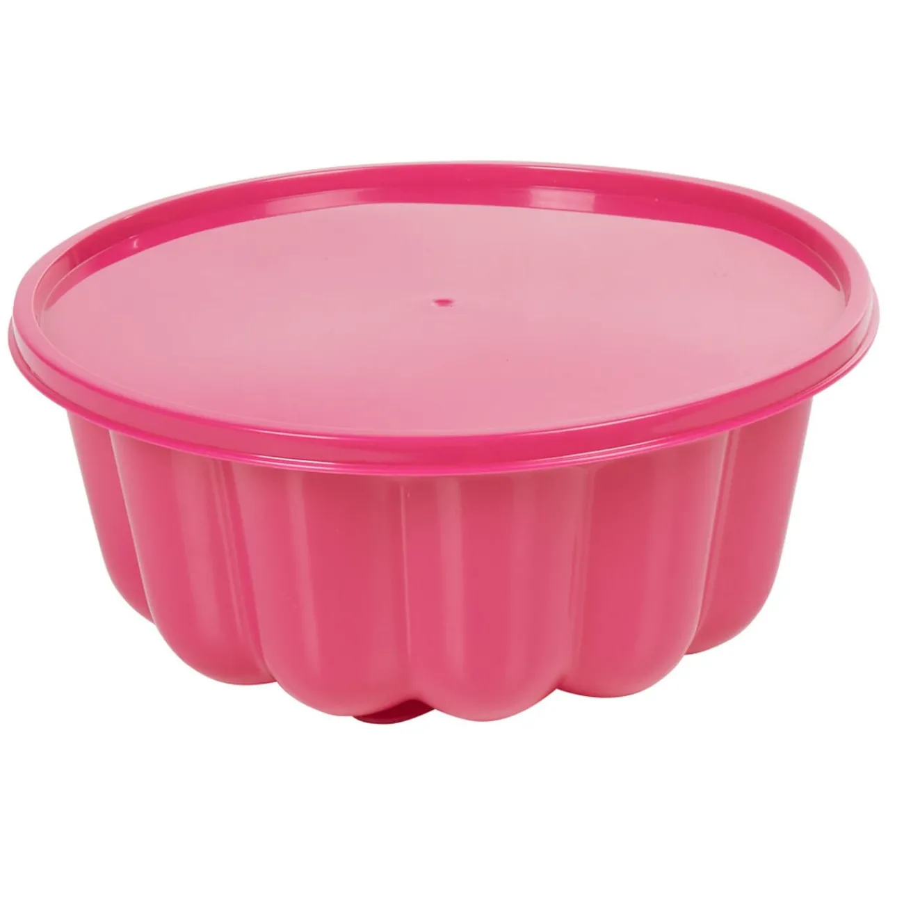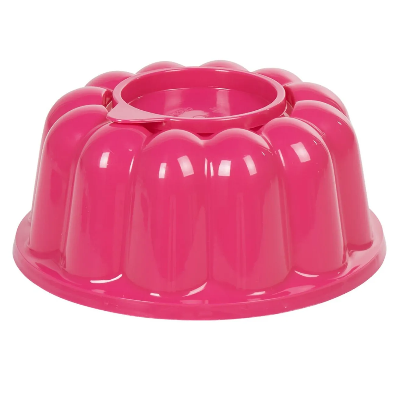 Moule à charlotte en plastique et silicone rose de 21 cm de diamètre.