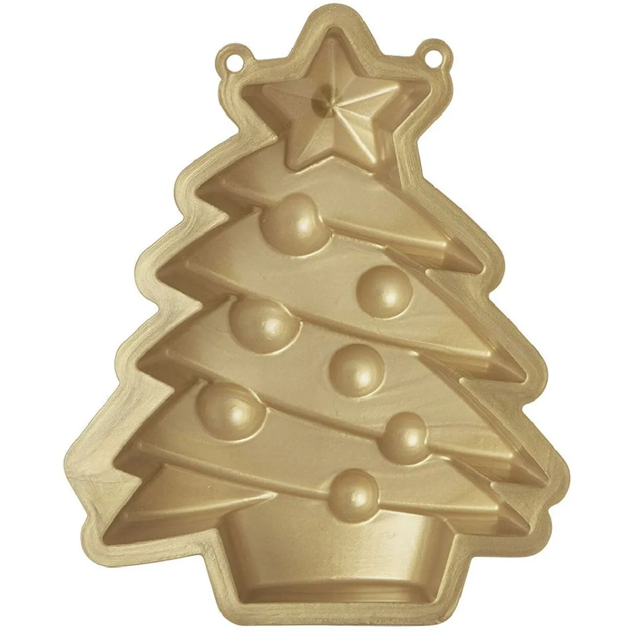 Moule à gâteau en forme de sapin de Noël en silicone doré, facile à démouler, il est idéal pour la réalisation de merveilleux gâteaux à l’occasion des fêtes de fin d’année !