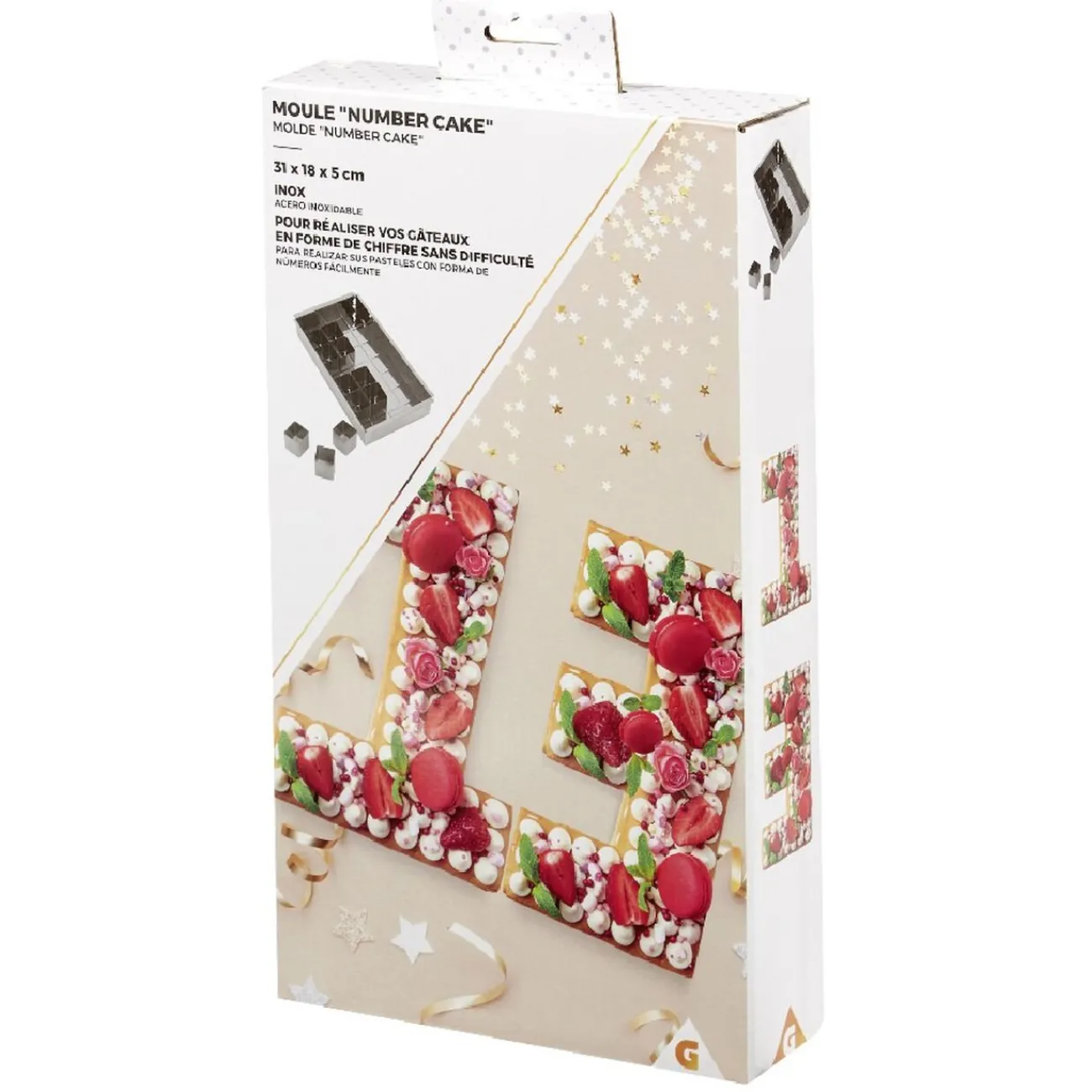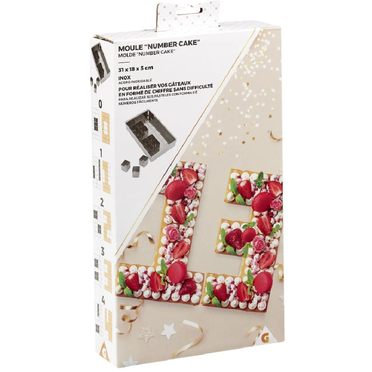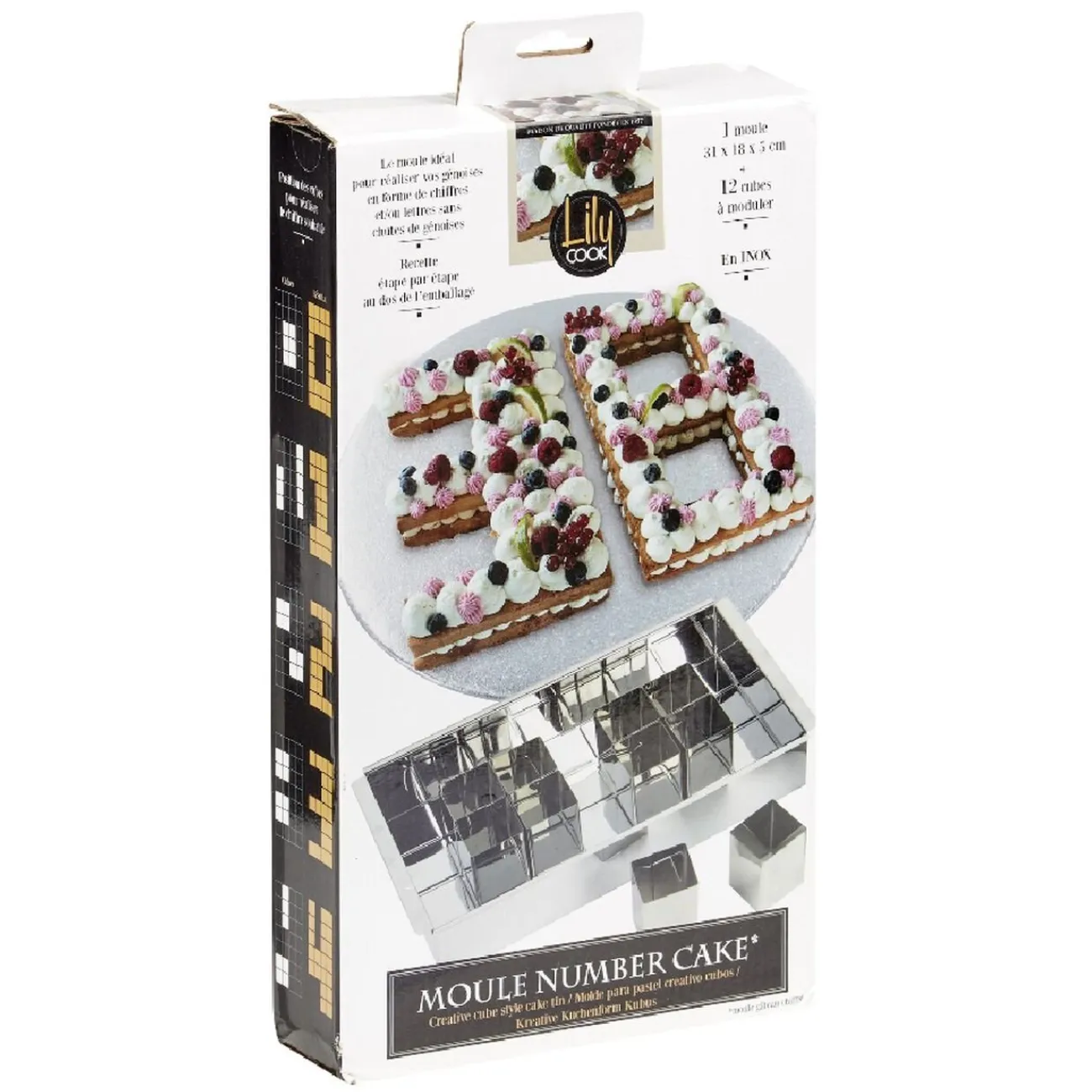 Simple d’utilisation, le moule rectangulaire est accompagné de plusieurs cubes à disposer de sorte à créer le chiffre souhaité, puis versez la pâte et enfournez.