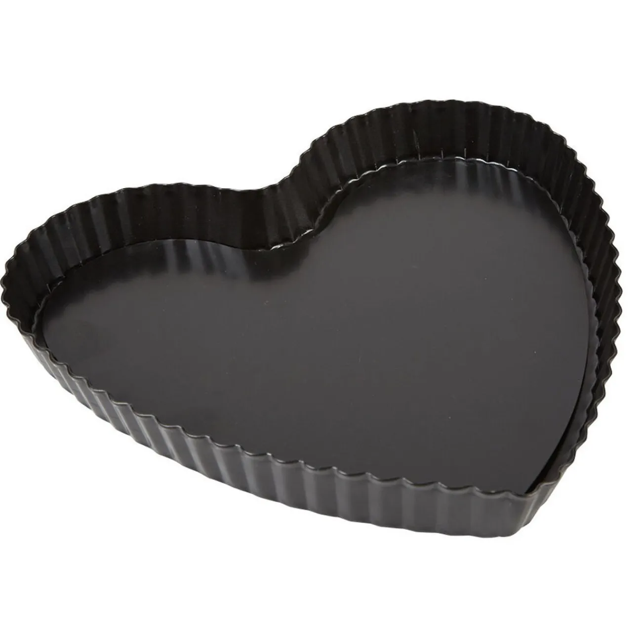 Moule à pâtisserie en forme de coeur, à fond amovible et en métal anti-adhérent ce qui facilitera le démoulage de votre pâtisserie.