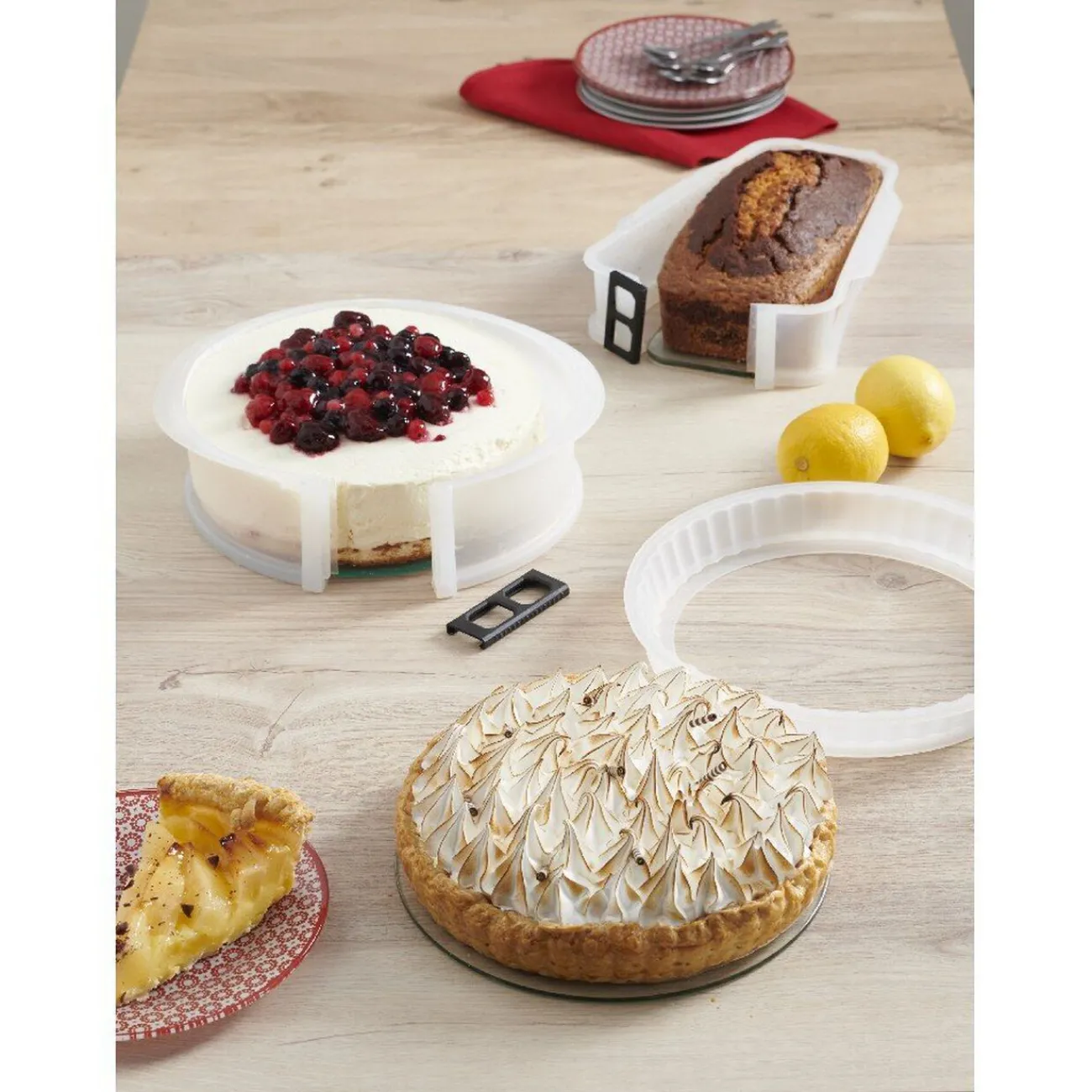 Devenez un adepte du plus facile des démoulages ! Un moule à tarte avec un fond amovible en verre et un tour détachable en silicone pour réussir de belles tartes aux pommes ou à la tomate à la décoration et au tour parfait.