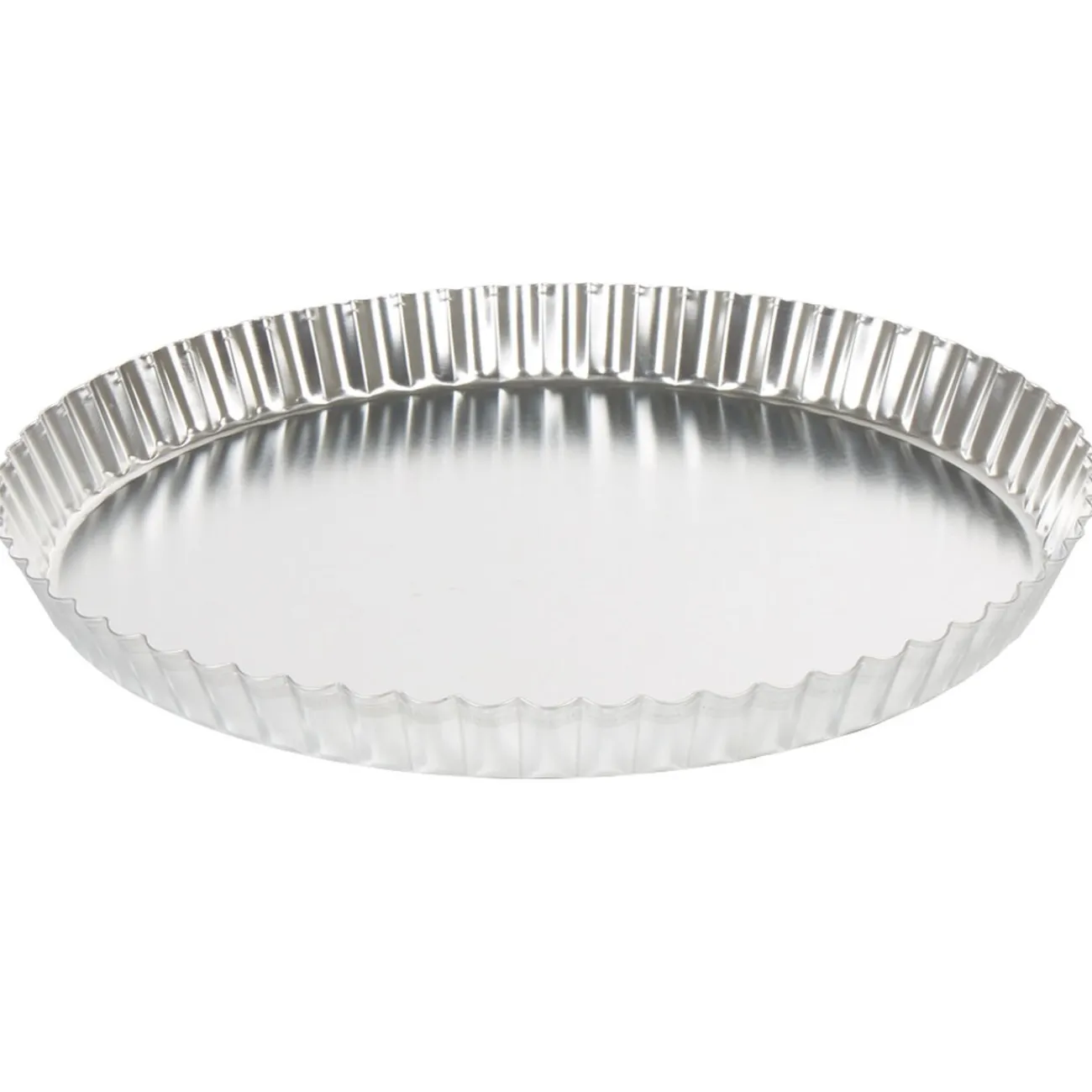 Moule à tarte en métal gris, adapté à la cuisson et à la congélation : +230° / – 40°.