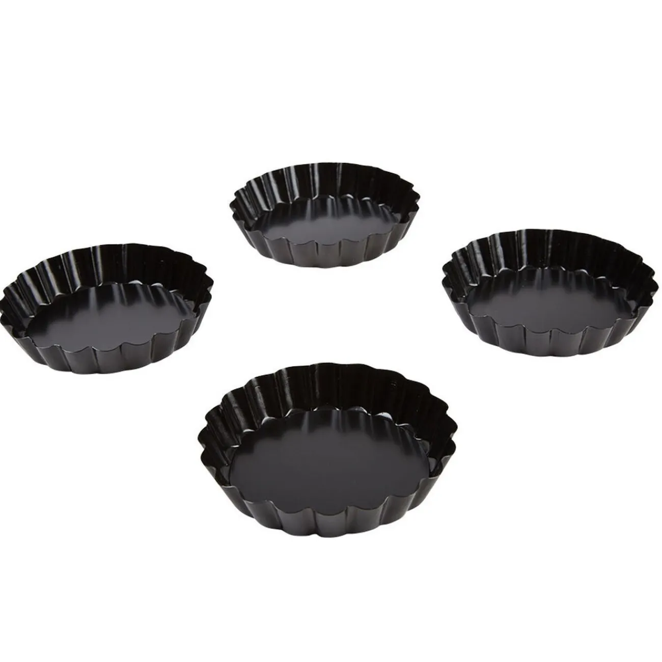 Lot de 4 moules ronds à tartelettes avec fonds amovibles ainsi le démoulage de votre pâtisserie sera parfait sans miettes ni effritements.