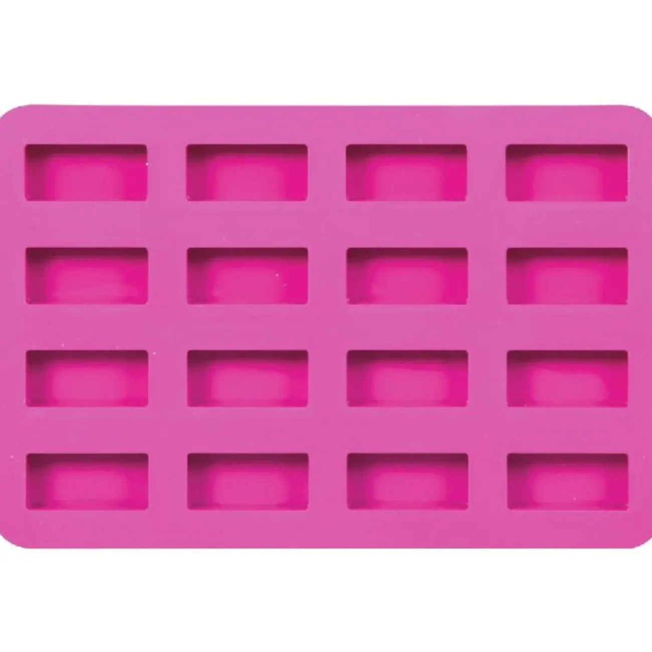 Dim. 23,7×16 cm, pour 16 mini-cakes dim. 2×4.3xh.0.9 cm, silicone, passe au four, congélateur, Micro-ondes, lave-vaisselle. Diff. coloris, disponibilité selon arrivage.