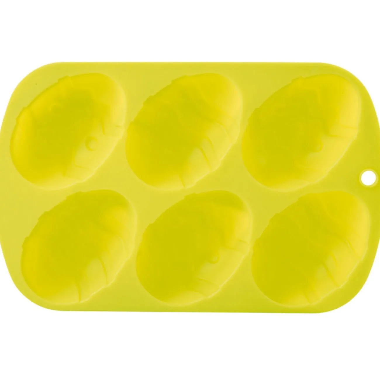 Moule 6 oeufs, dim. 26,5×17 cm, silicone. Diff. coloris, disponibilité selon arrivage.