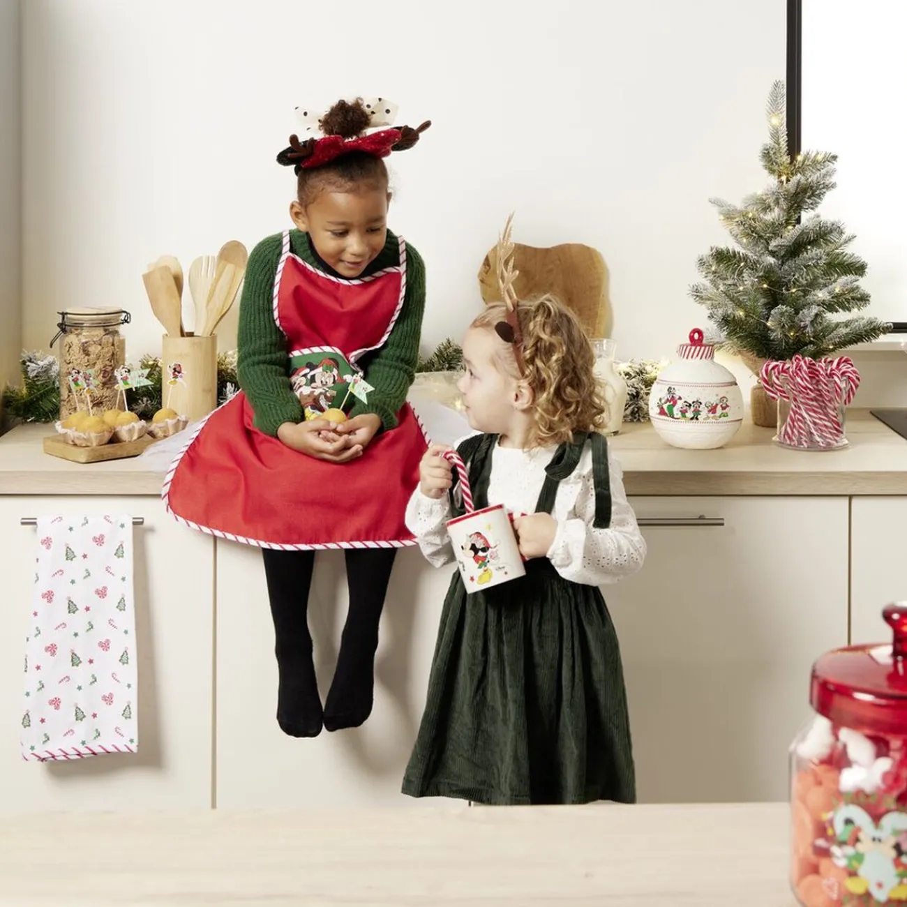 Craquez pour ce mug représentant Mickey en train de porter une pile de cadeaux de Noël auprès de sa chère Minnie, visible sur l’autre face.