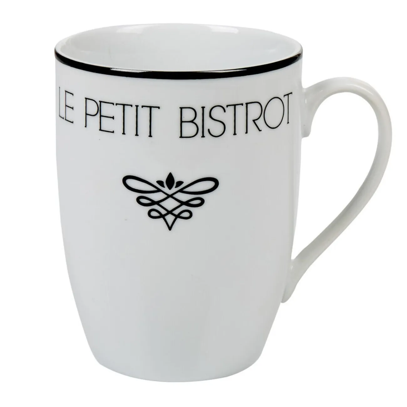 Mug blanc et noir « Le petit bistrot », cont. 290 ml, dim. Ø7,7xh.10 cm, porcelaine.