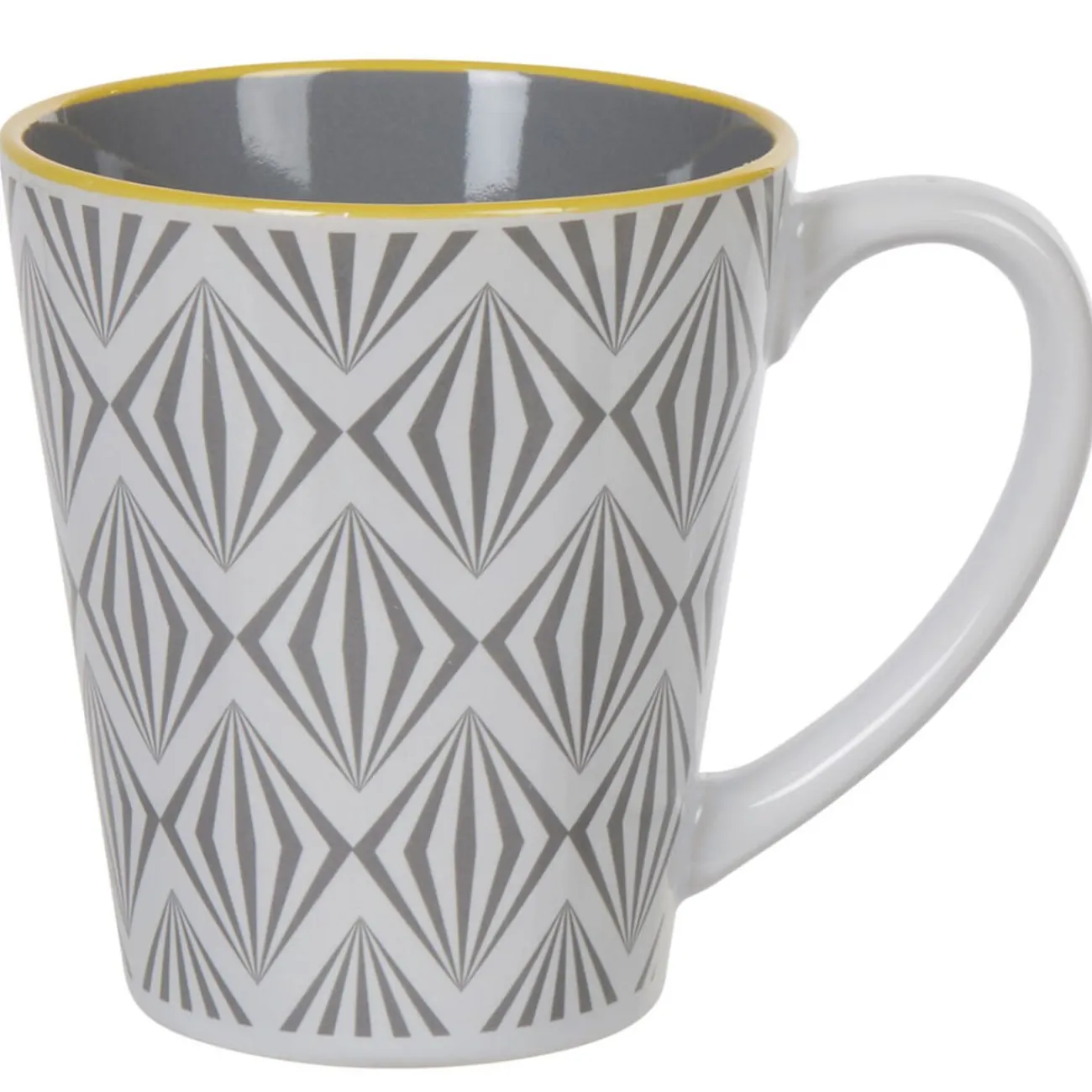 Prenez plaisir à boire vos boissons chaudes avec ce mug motifs géométriques gris et blancs.