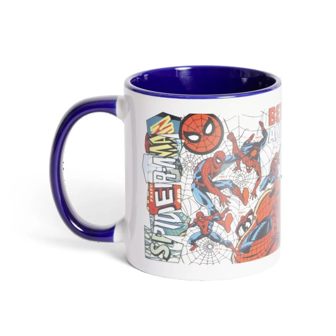 Faites entrer l’action dans votre quotidien avec ce mug Marvel arborant un intérieur bleu et un extérieur blanc orné de toiles d’araignées, de plusieurs Spiderman en action et d’écritures fun.