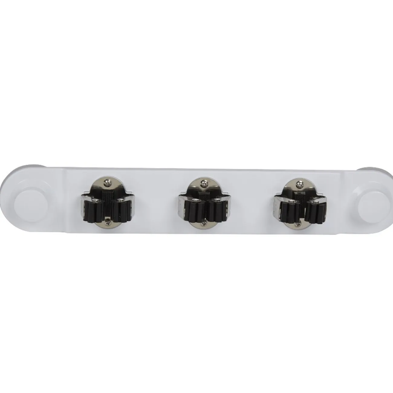 Rangez jusqu’à 3 balais sur cette accroche blanche à ventouses resserrables.
