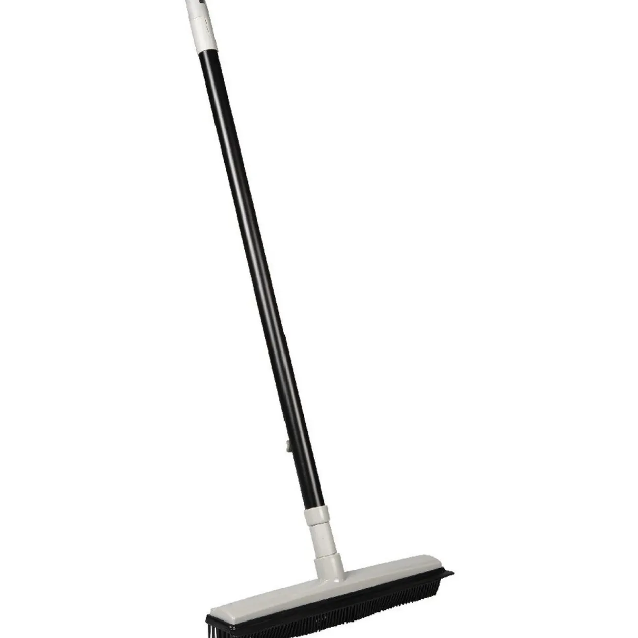 Balai avec embout caoutchouc spécialement conçu pour attraper les poils et cheveux qui traînent.