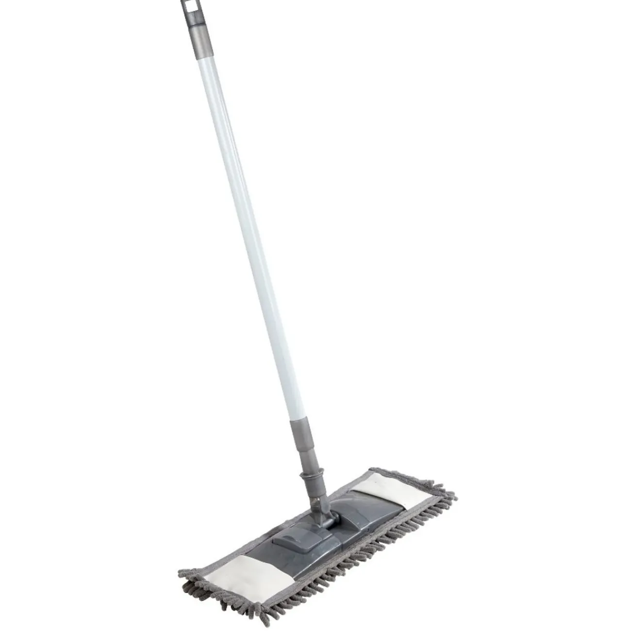 Ce balai plat avec housse chenille microfibre et son manche télescopique est pratique pour dépoussiérer et laver en un tour de main !