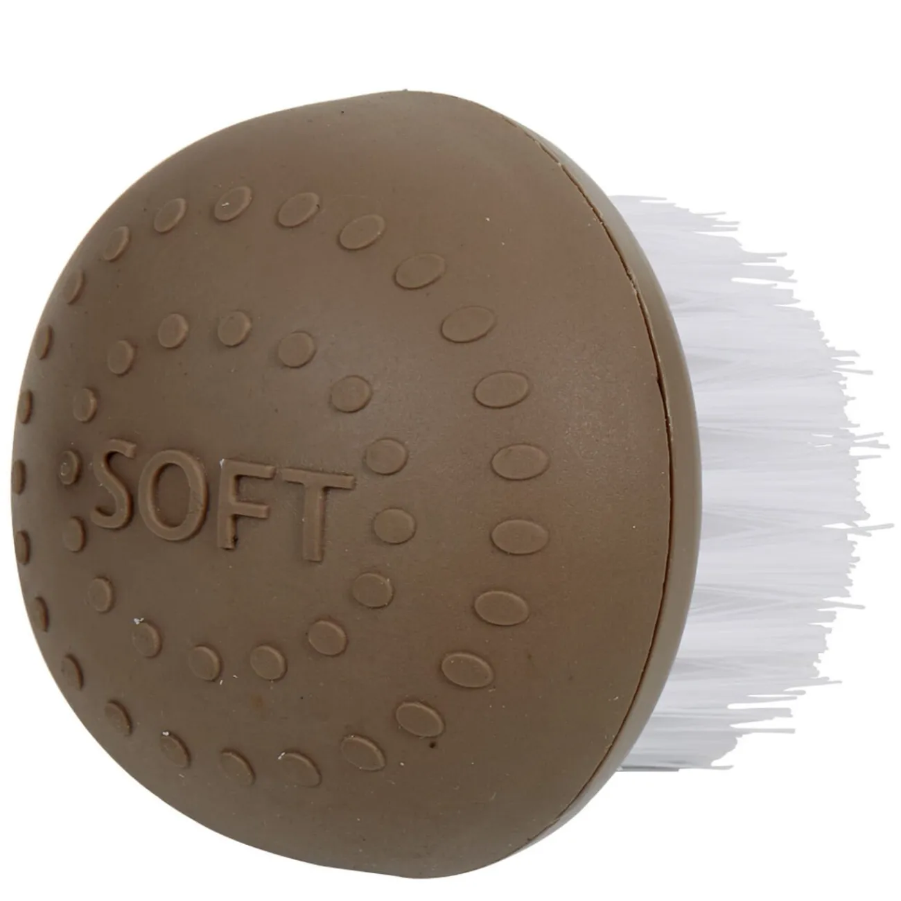 Brosse de couleur taupe et blanche, permet de nettoyer facilement et rapidement les légumes.