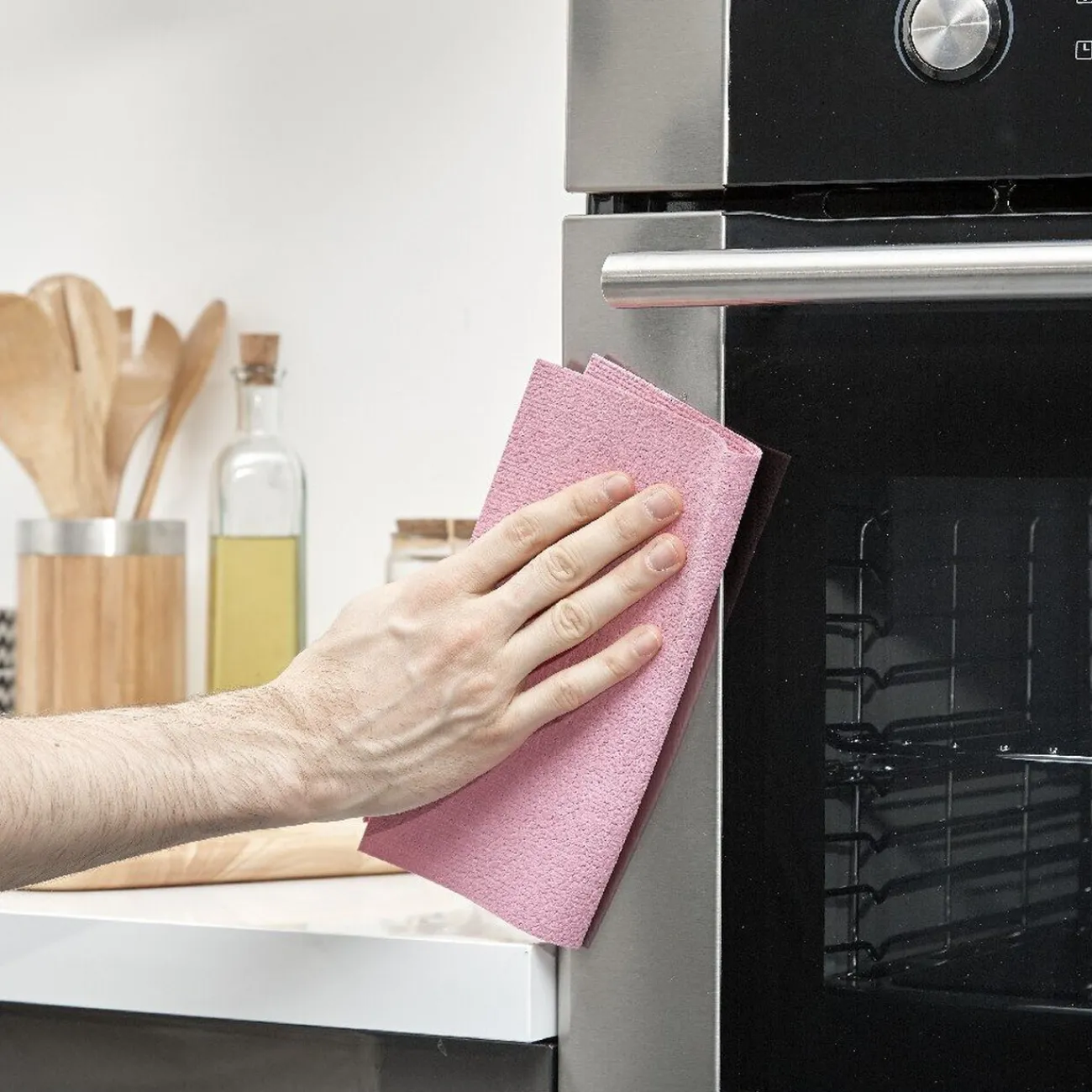 Lot de 4 chiffons en microfibre de couleur bleu et rose, idéal pour nettoyer les vitres, appareils électroménagers et autres meubles de votre intérieur.
