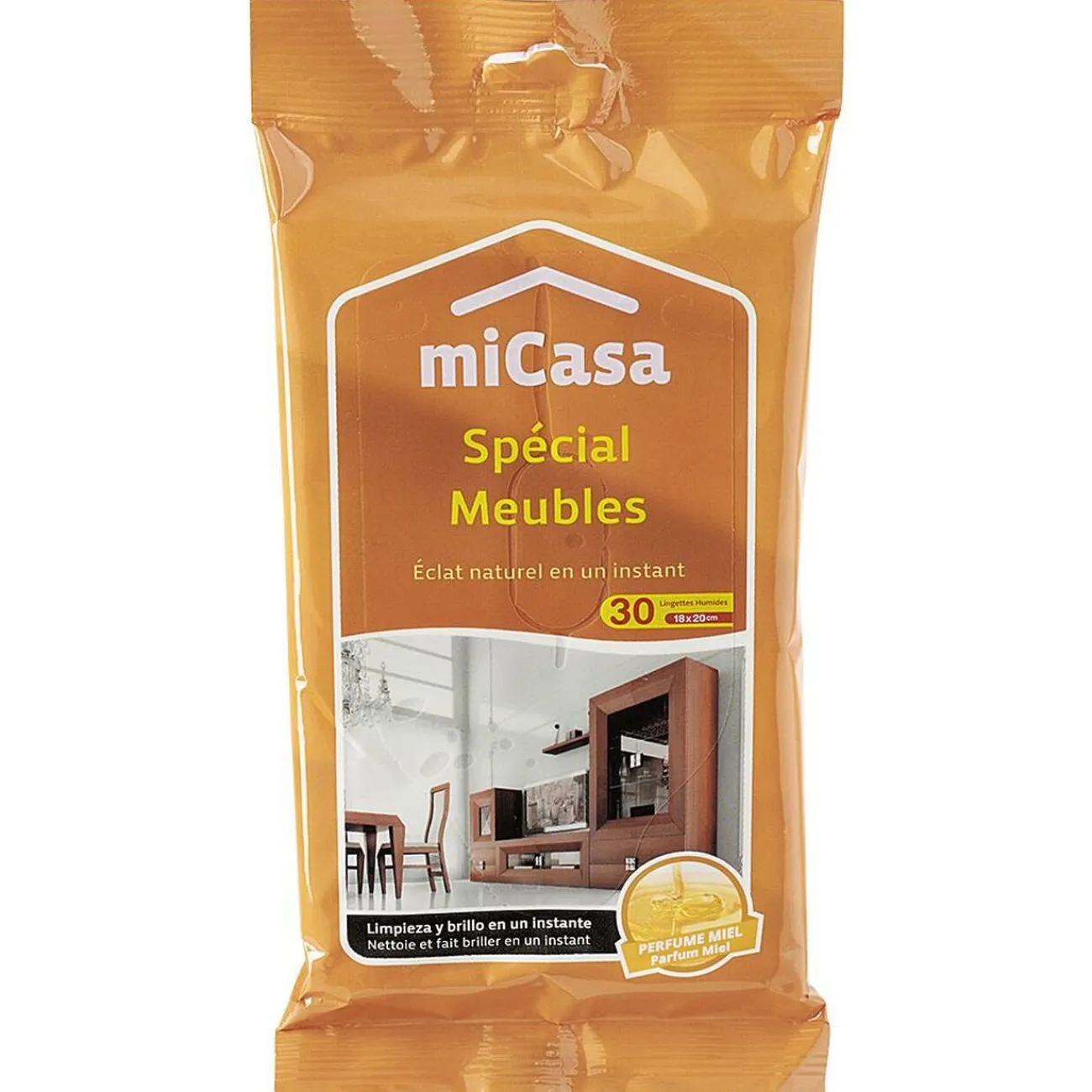 30 lingettes humides pour donner un éclat naturel en un instant à vos meubles.