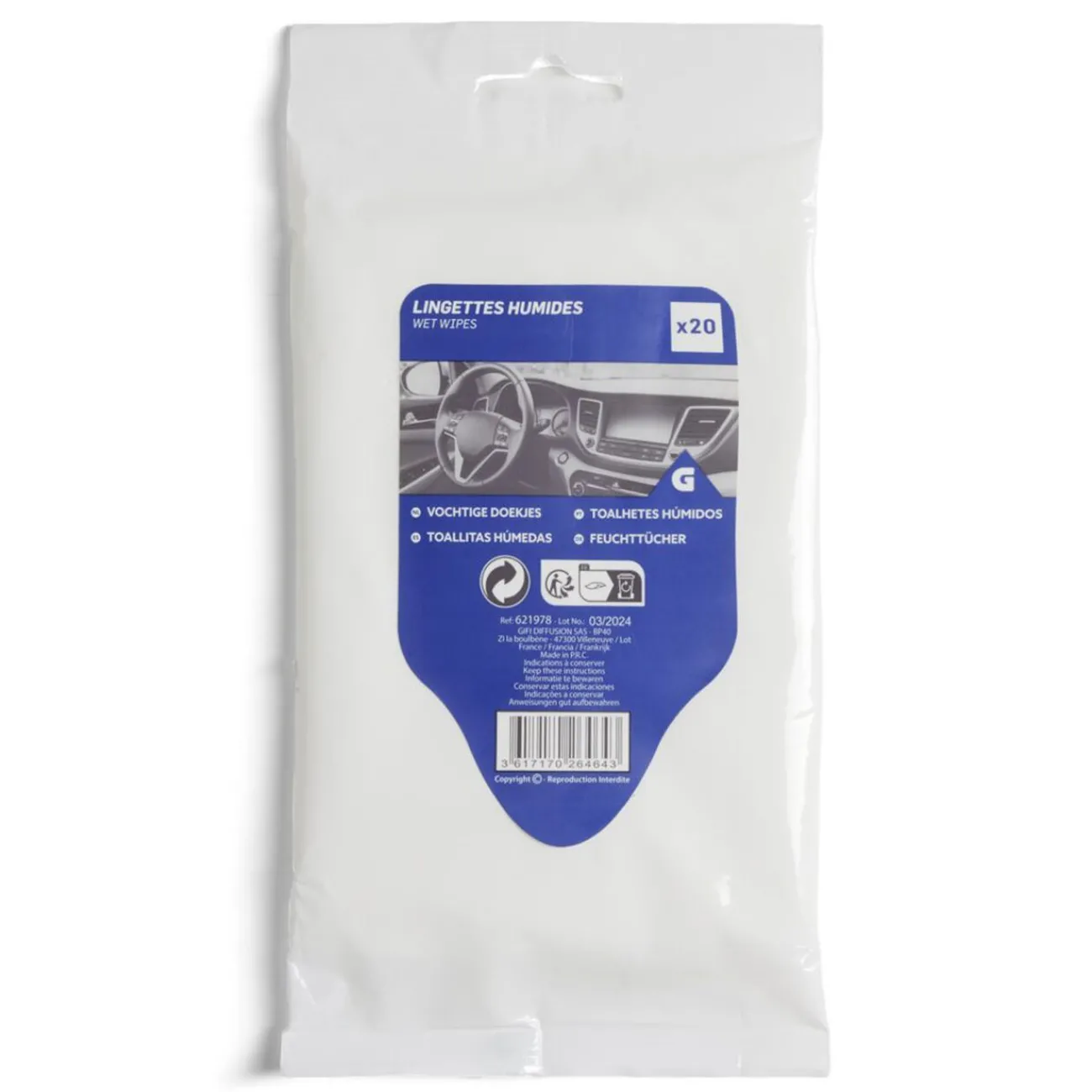 Ce lot de 20 lingettes humides pour voiture offre une solution pratique et efficace pour le nettoyage rapide de votre véhicule.
