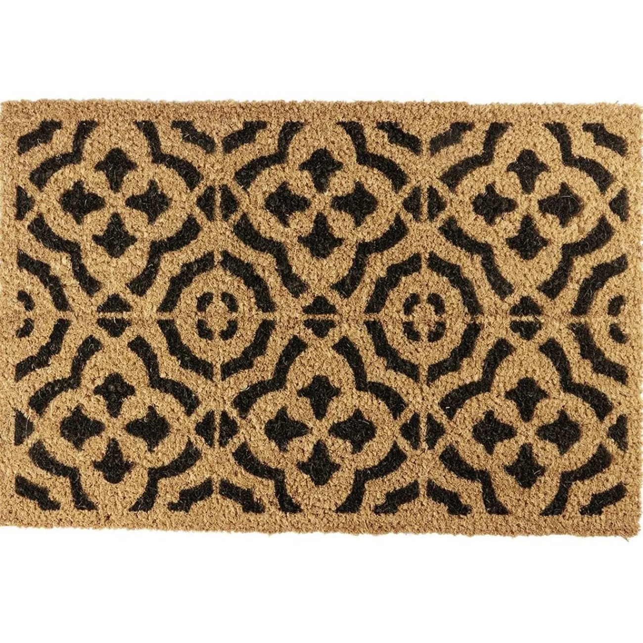Ce paillasson en fibres de coco naturelles et aux motifs arabesques noirs habillera chiquement votre entrée tout en vous permettant de rentrer chez vous les chaussures essuyées.