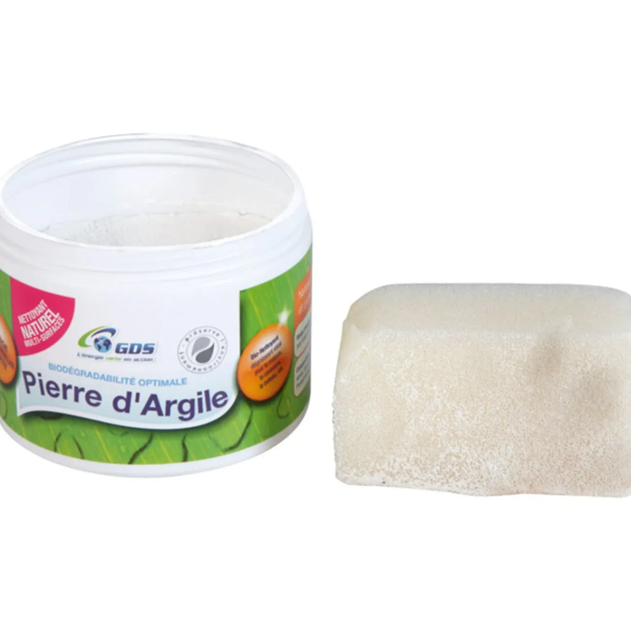 Naturelle, la pierre d’argile nettoie très efficacement et sans rayer toute votre maison : mobilier de jardin, métaux, vitres, liner de piscine, carrelages, etc. Eponge incluse. Nettoyant multi-usages, nettoie, dégraisse, détartre et lustre. Pot de 500 gr.